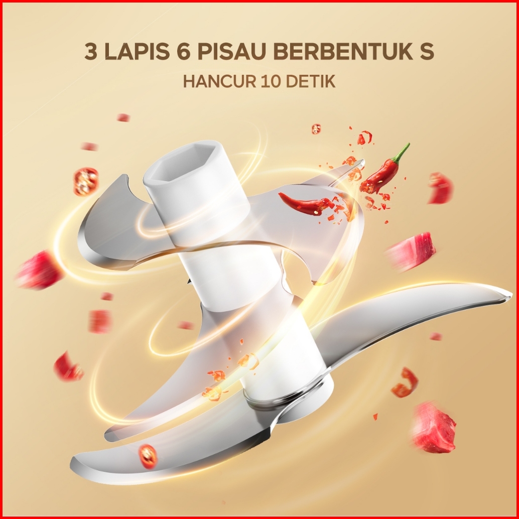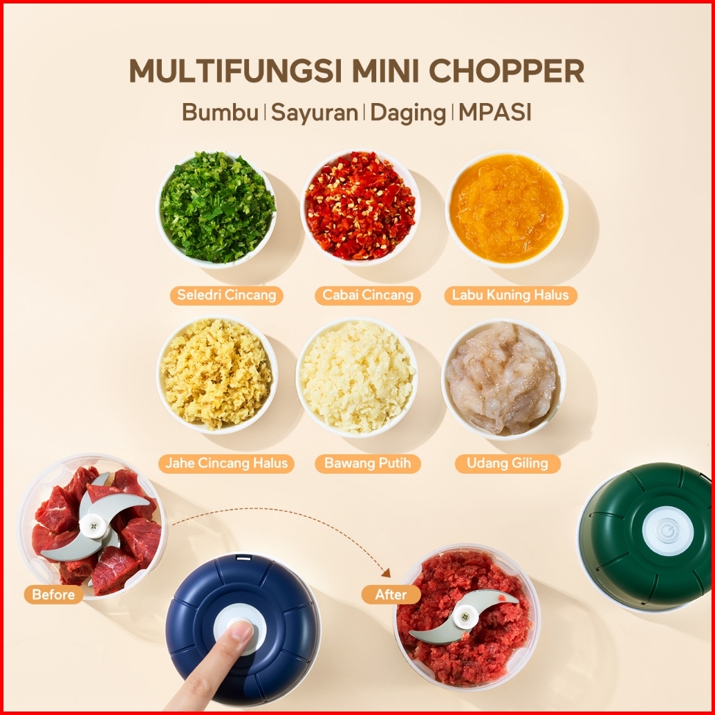 Ecentio Mini Food Processor 6 Pisau 250ml Giling Bawang Daging 10 Detik Penghalus Bumbu Food Grade Mini Chopper Mpasi Ba