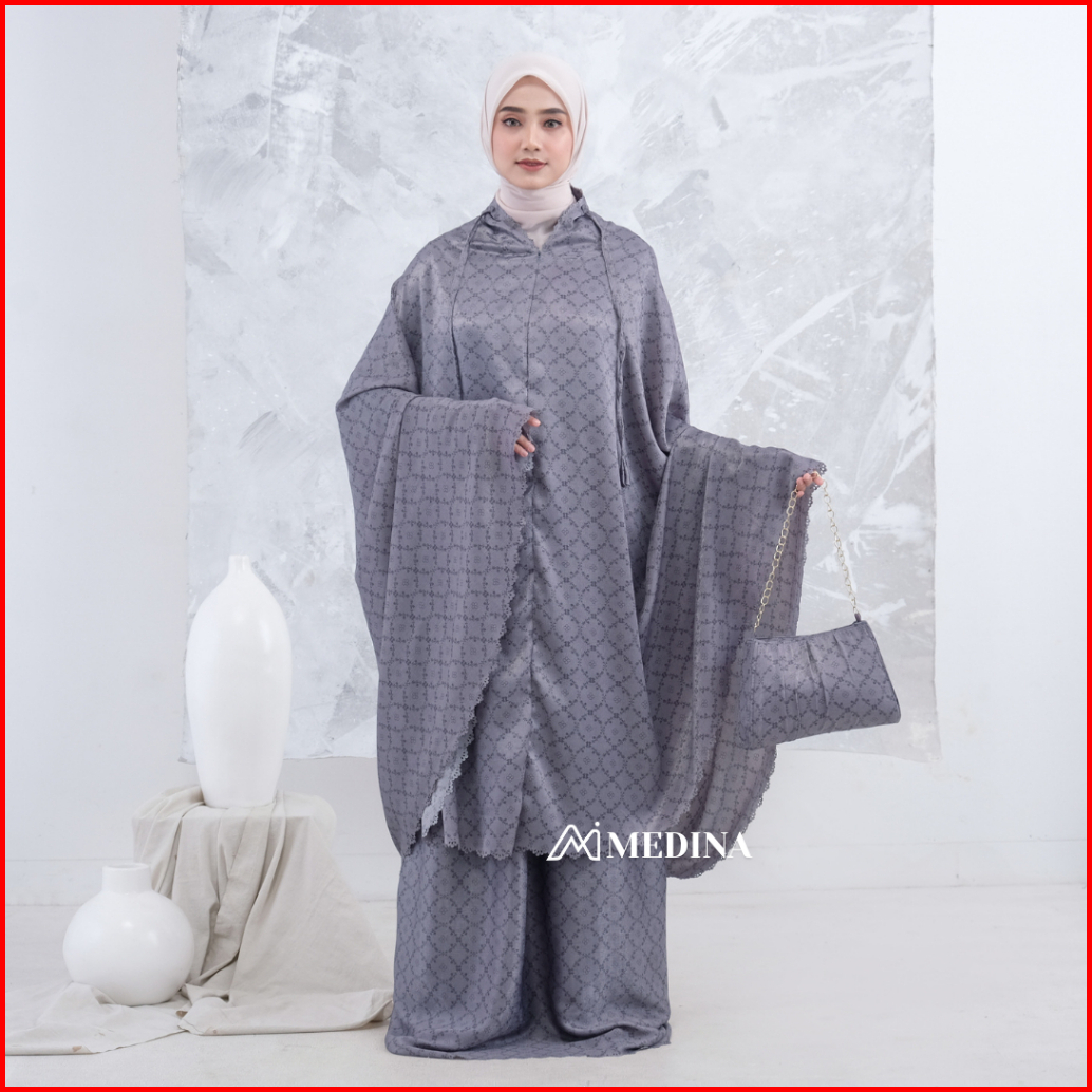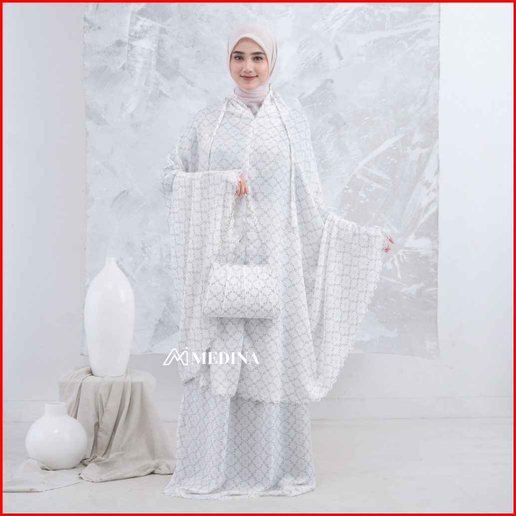 Mukena Dewasa Santorini Silk 2in1 Lasercut Premium Adem Nyaman Mewah Syafira Series Medina