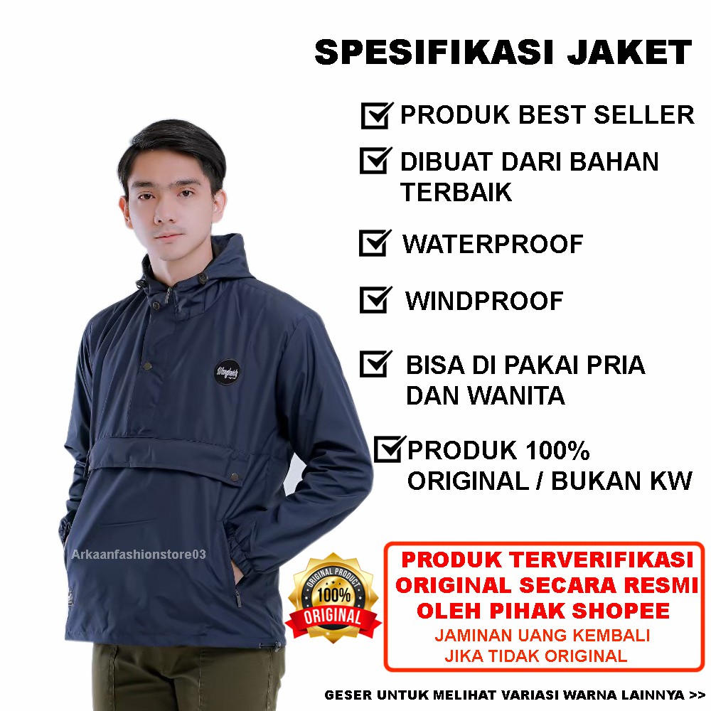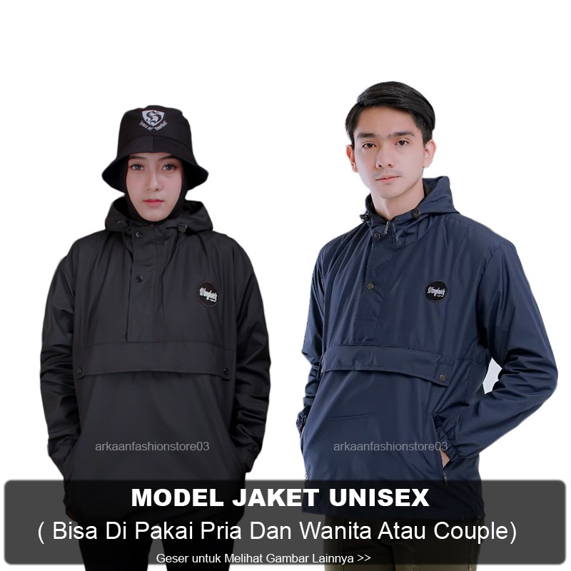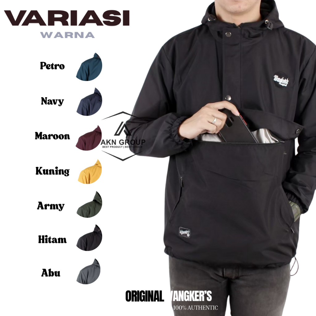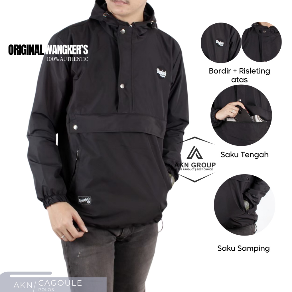 AKN Jaket Cagoule Pria Simple / Jaket Pria Polos Outdoor Kantong Doraemon Original Wangkers Big Size L - XXL