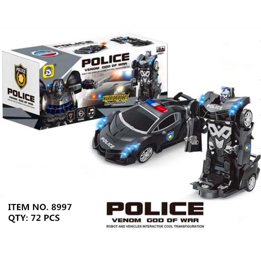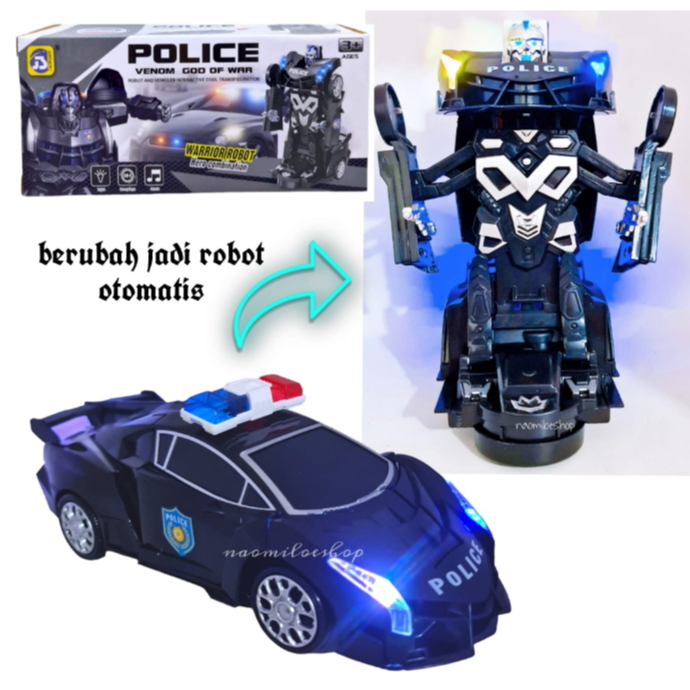 JS Mainan Anak Mobil Polisi Hitam 2IN1 Mobil Bisa Jadi Robot