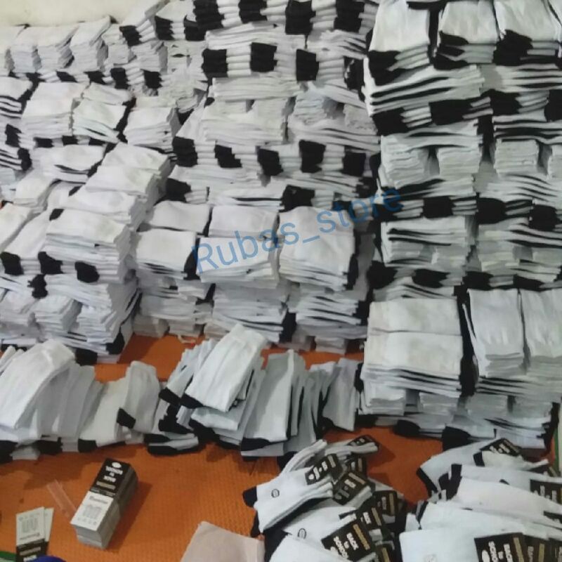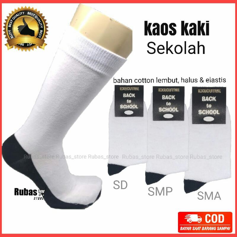 Kaos kaki Anak Sekolah SD SMP SMA, Panjang Polos Putih Telapak Hitam Bahan Katun Lembut