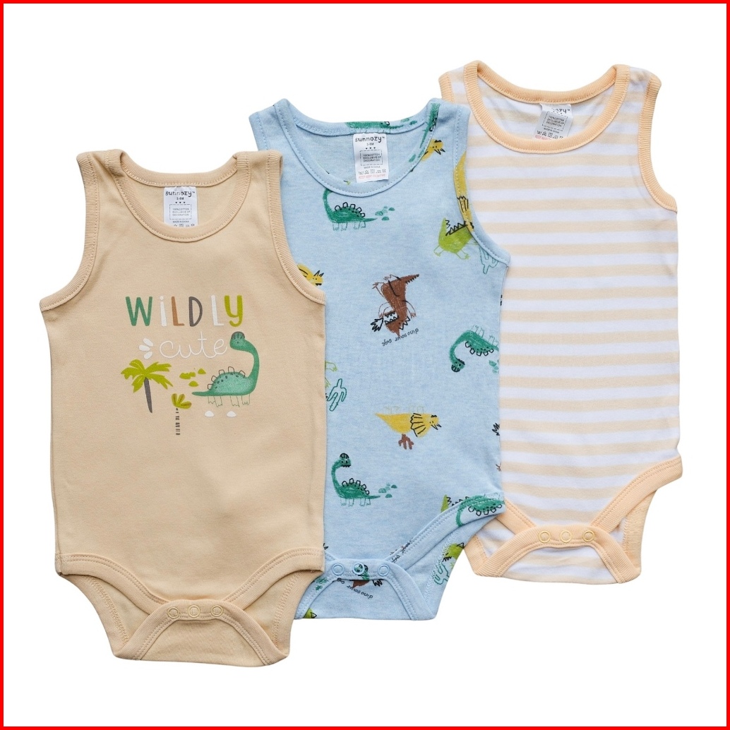 Babypotato - Sleeveless Bodysuit 3pcs Motif Wildly Jumper Kutung Bayi