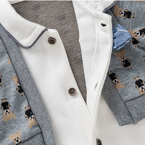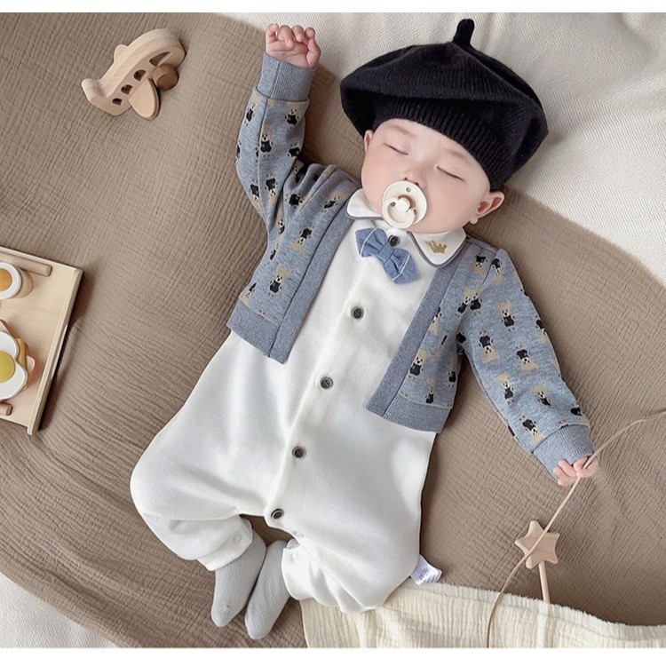 Jumper Bayi Lengan Panjang Usia 3-18 Bulan Model Cardigan Grey Bear Premium | Bodysuit Anak Lucu Ala Korea
