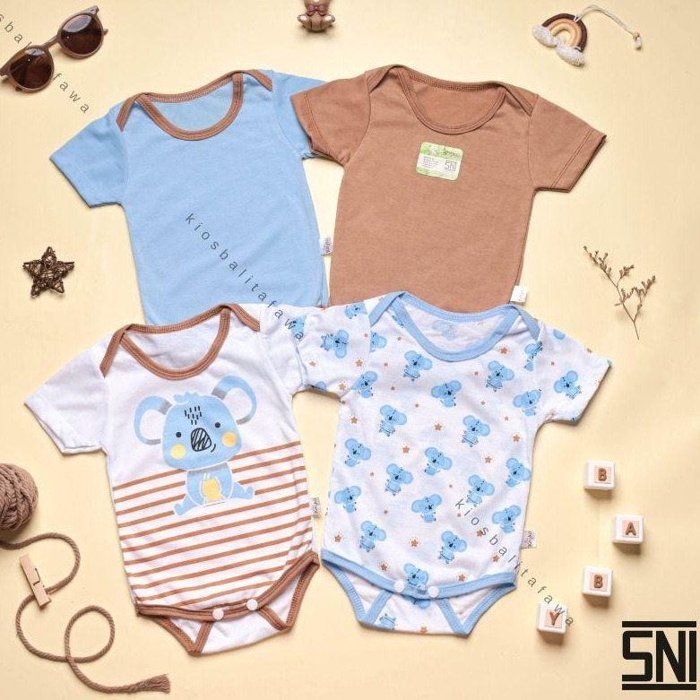 2. Paket 4 Pcs Jumper Bayi SNI 0-6 Bulan - Baju Kodok Newborn Laki Perempuan - Kado Lahiran