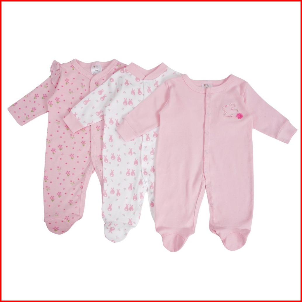 Babypotato - Baby Sleepsuit 3pcs Motif Pink Bunny