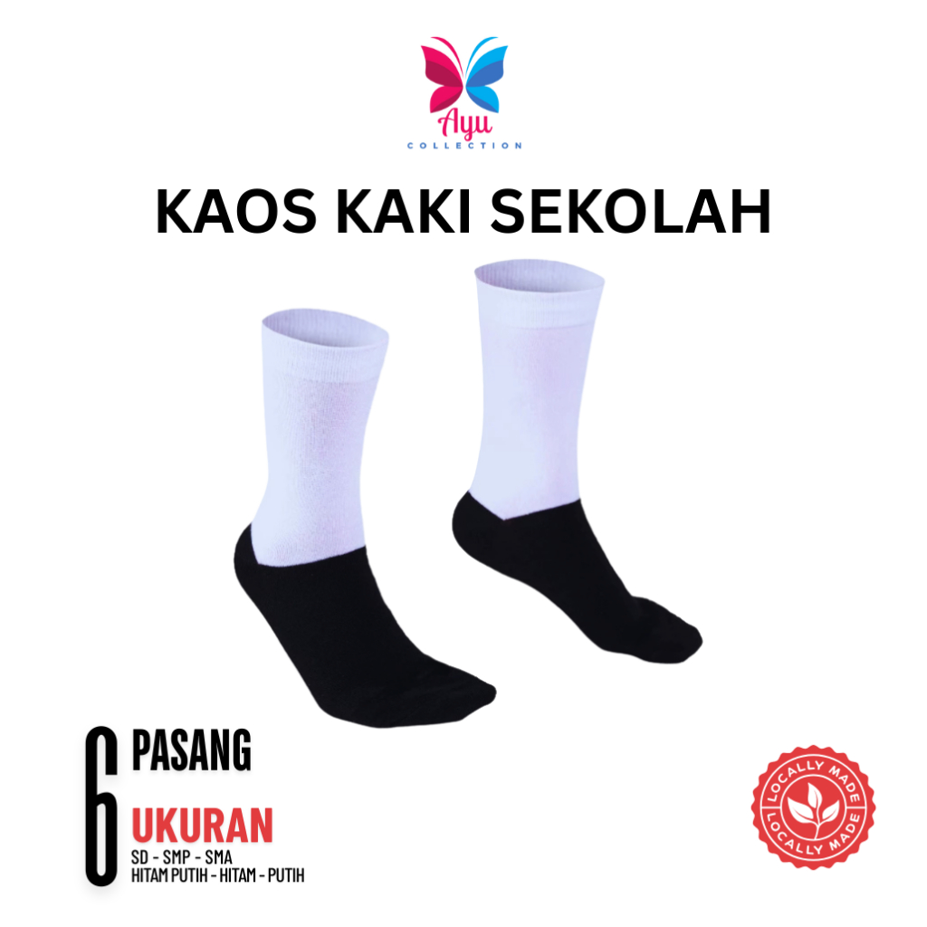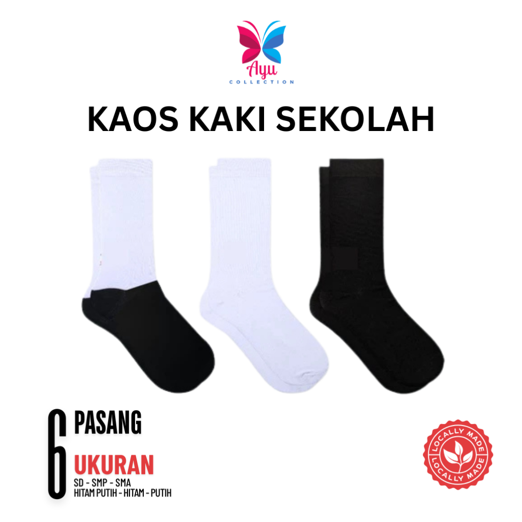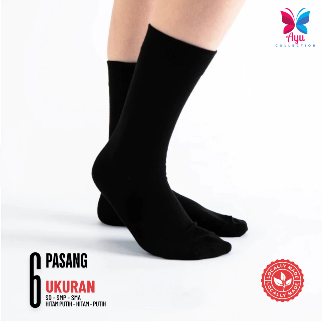 Kaos Kaki Sekolah SD SMP SMA | Hitam Putih Polos | Adem & Tebal | Isi 6 Pasang