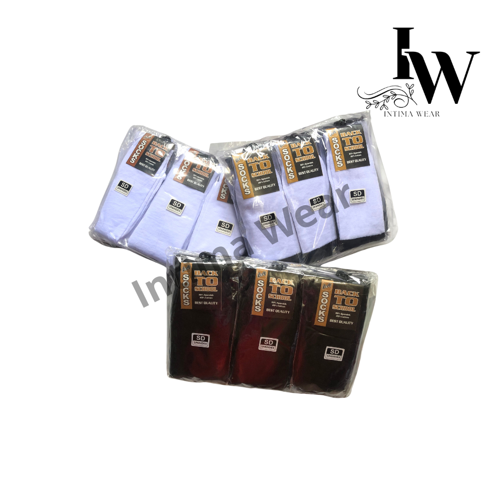 IntimaWear - Grosir 12 PCS Kaos Kaki Sekolah SD SMP SMA Hitam Putih Polos Murah Grosir