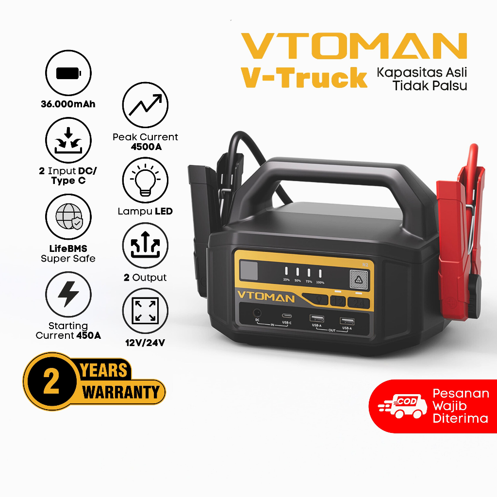 VTOMAN V-Truck Jumper Aki Mobil 12V & 24V Kapasitas 135Wh Jumper Aki Mobil Truck Jumper Aki Mobil Pickup dan Box Vtoman
