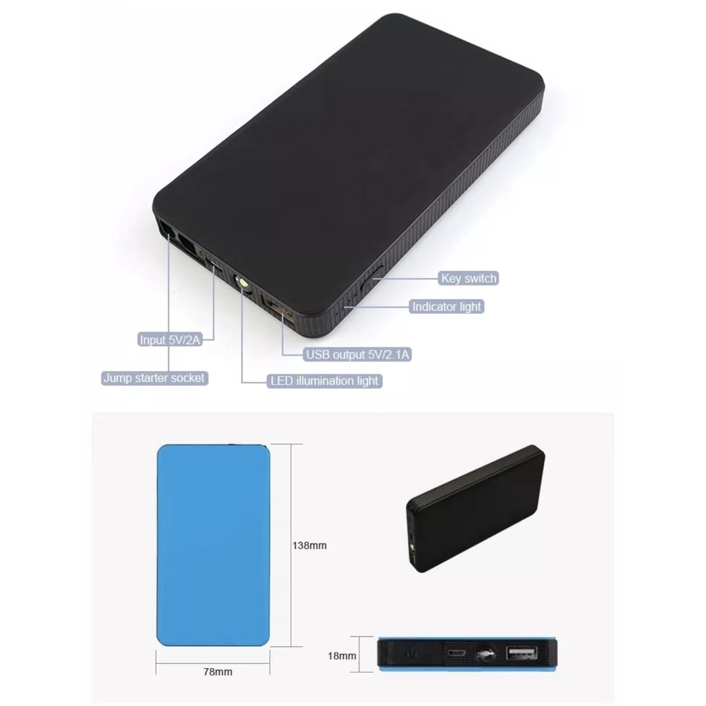 Portable Jumper Aki 12V 10800 mAh Mobil dan Motor Power Bank dengan Senter Led & jumper aki