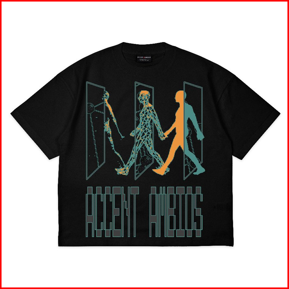 Accentambios Boxy Oversized Tshirt Walking Through Black - Cotton Combed 20s