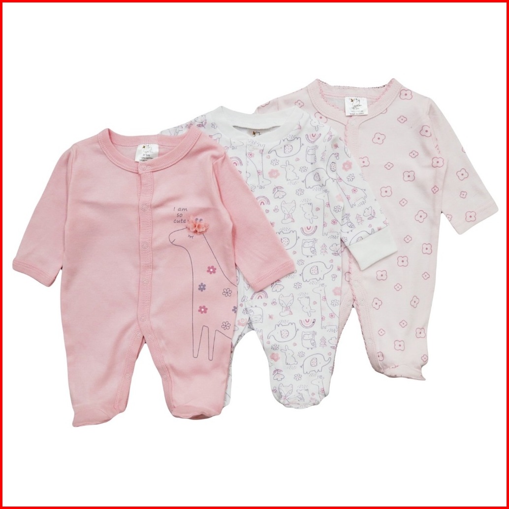 Babypotato - Baby Sleepsuit 3pcs Motif Socute