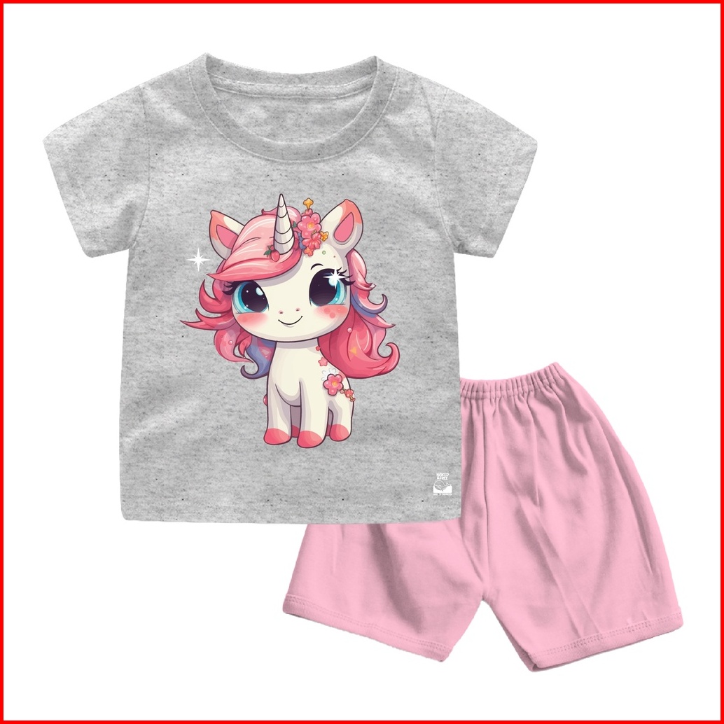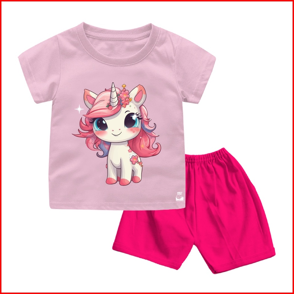 Naked Free Setelan Bayi Anak Seri Pink Unicorn Usia 6 Bulan - 8 Tahun Bahan Katun Combed 30s