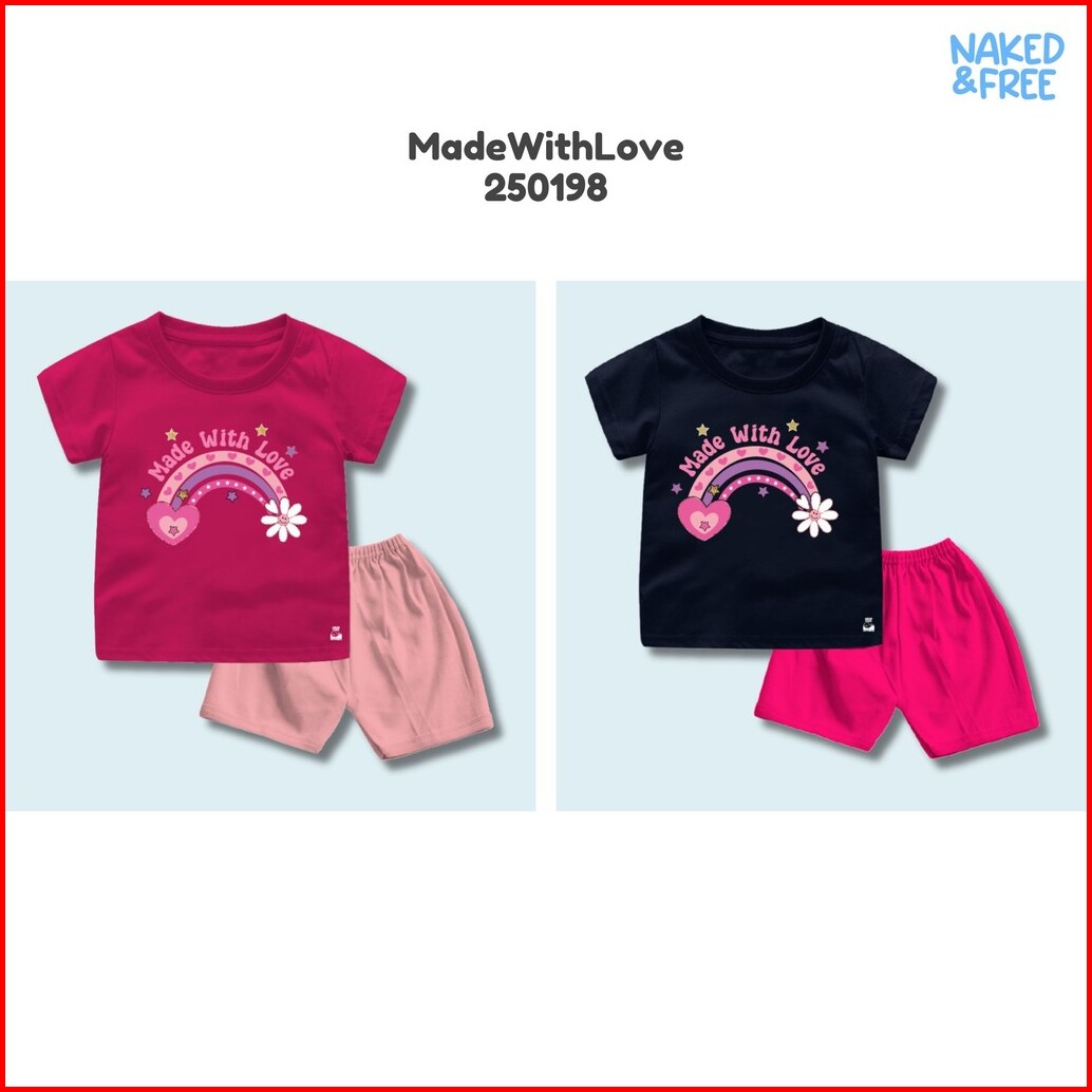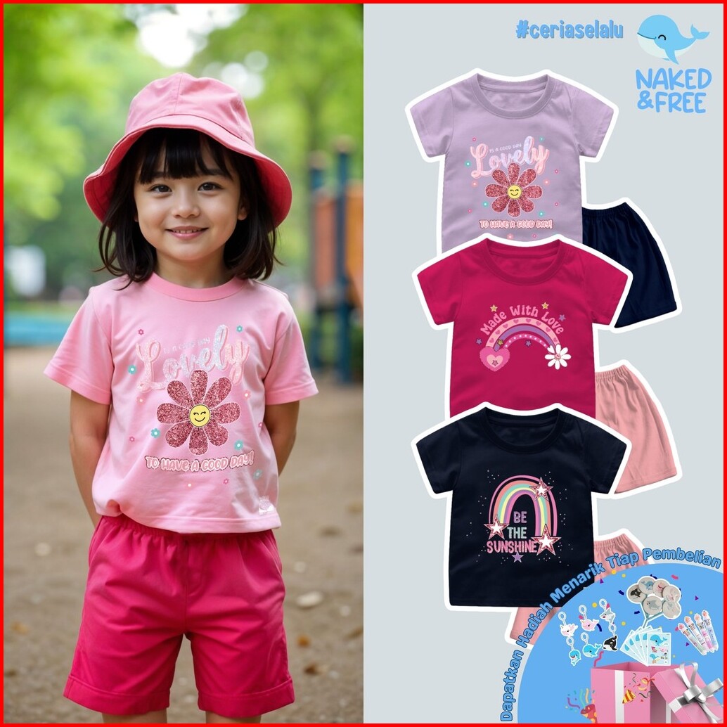 Naked Free Setelan Pendek Bayi Anak Perempuan Glitter Series Be The Sunshine Bahan Katun 30s Gli-1