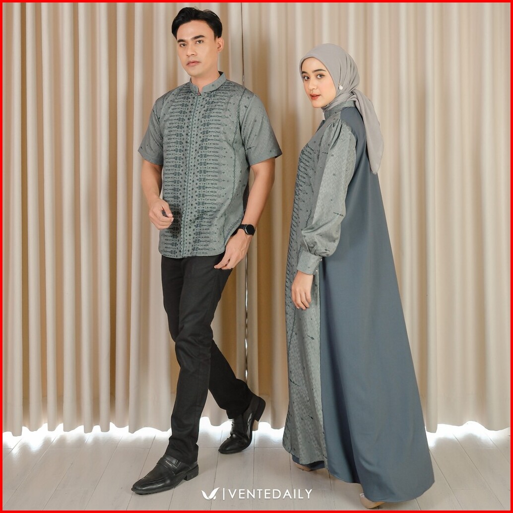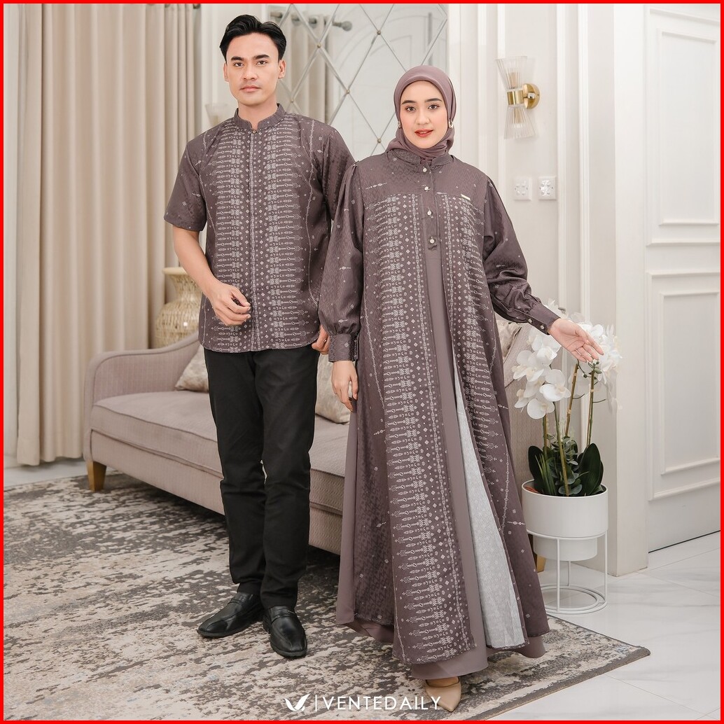 Ventedaily - Launa Couple Baju Pasangan Gamis Kemeja Elegan Outfit Kondangan Couple Suami Istri