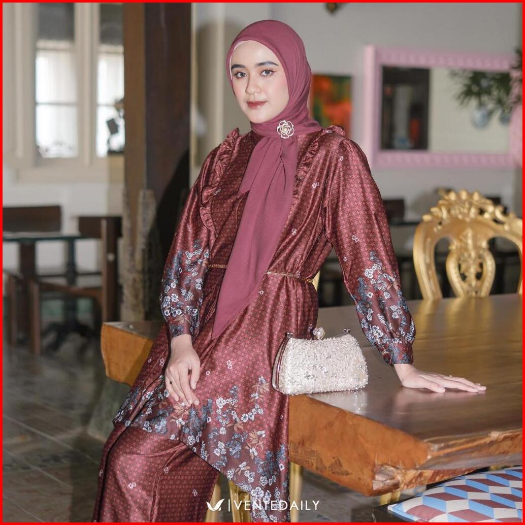 Ventedaily - Falisha One Set Setelan Atasan Tunik Celana Outfit Kondangan Batik Modern Kekinian
