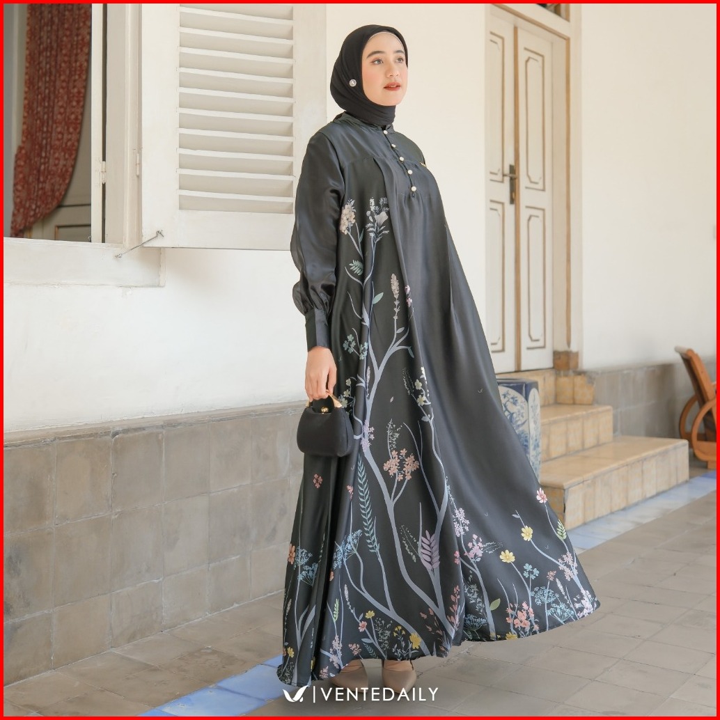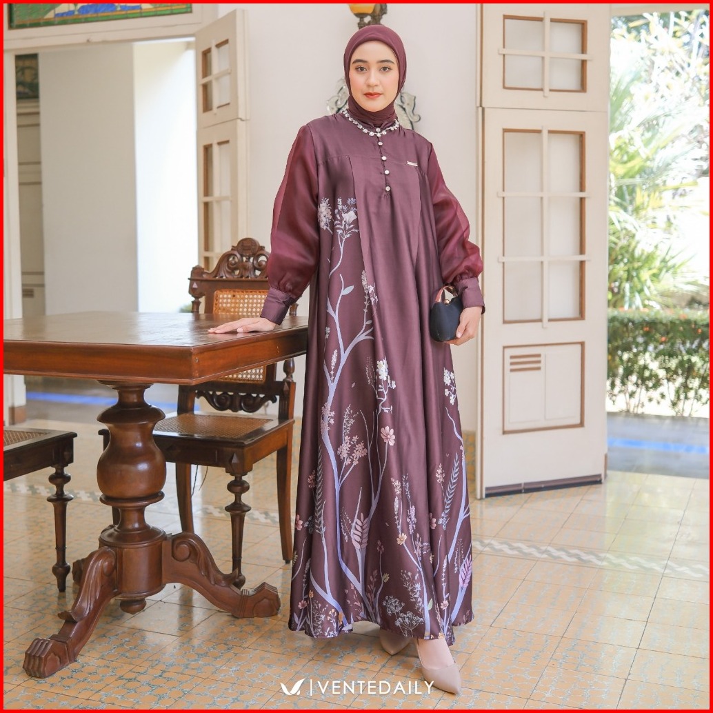 Ventedaily - Tsanara Gamis Busui Kekinian Dress Pesta Kondangan Hajatan Motif Bunga Mewah Elegan