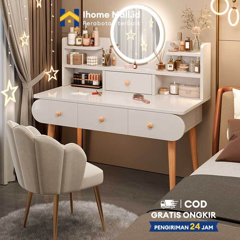 IH Meja Rias Minimalis Estetik + Kursi Meja Rias Lampu LED Meja Rias Aesthetic Meja Kamar Tidur Meja Rias Dengan Cermin
