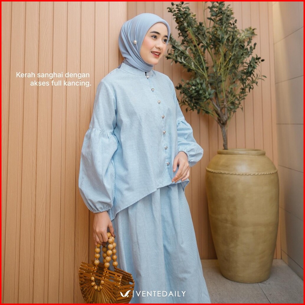 Ventedaily - Mirea One Set Rok Hangout Arisan Katun Salur Busui Setelan Wanita Casual Kekinian