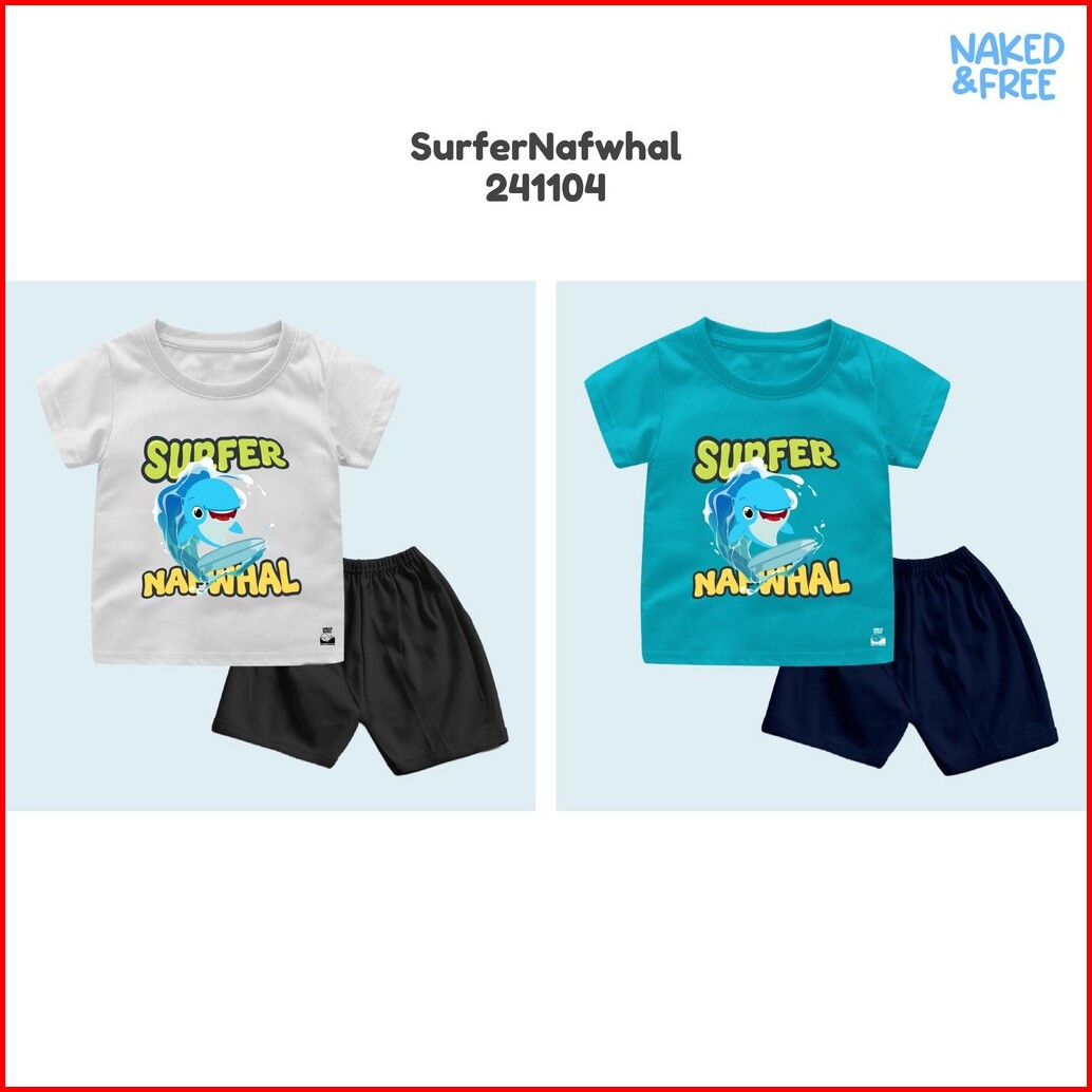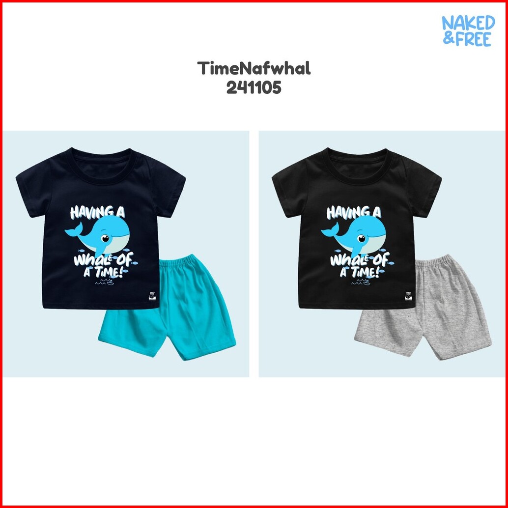 Naked Free Setelan Pendek Bayi Dan Anak Laki-laki Nafwhal Series Orca And Whale Bahan Katun Combed
