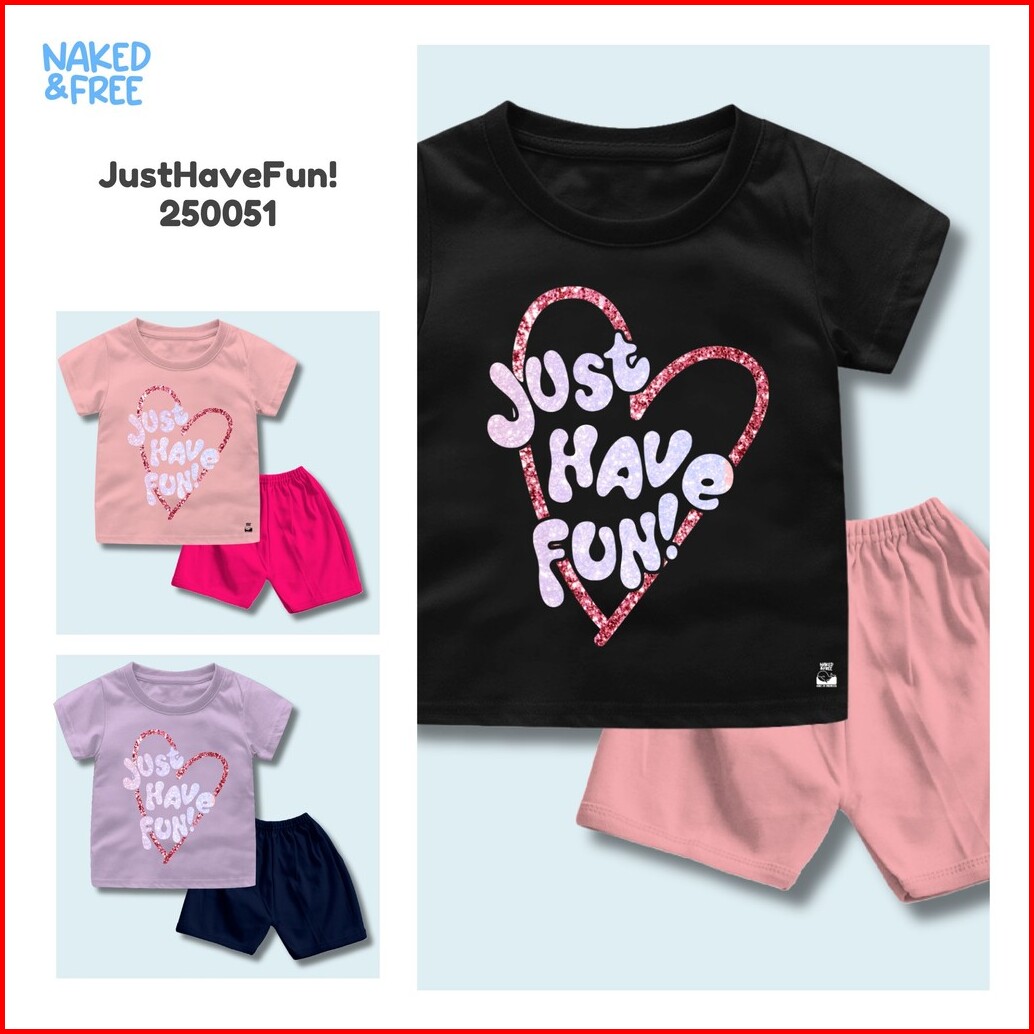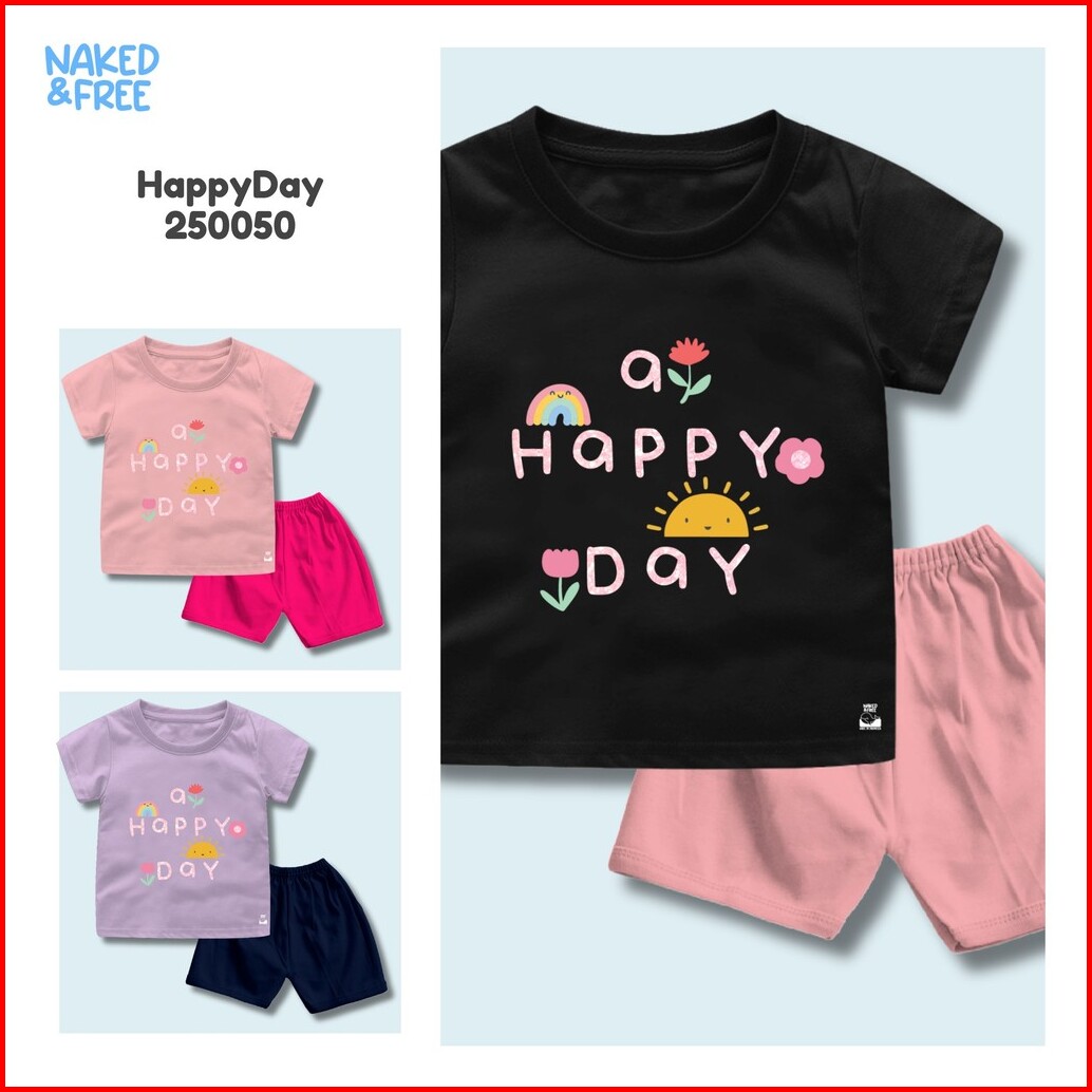 Naked Free Setelan Pendek Bayi Anak Perempuan Typography Series Happy Day Fun Bahan Katun Combed