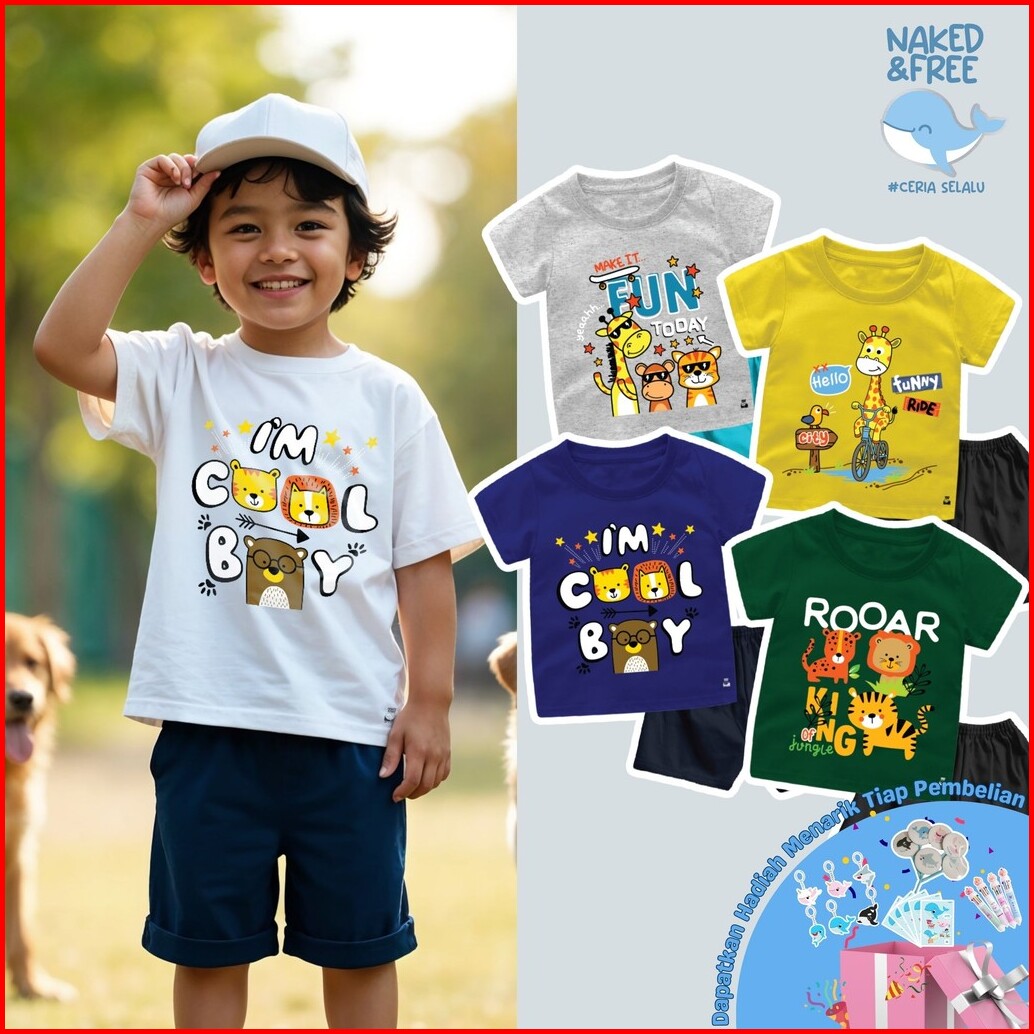 Naked Free Setelan Kaos Pendek Bayi Anak Laki-laki Animal Series Cool Jungle Boy Bahan Katun Ani-1