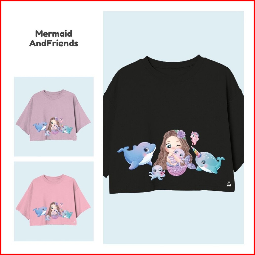 Naked Free Croptop Anak Perempuan Mermaid Series Mermaid And Friend Shell Secret Bahan Katun 30s
