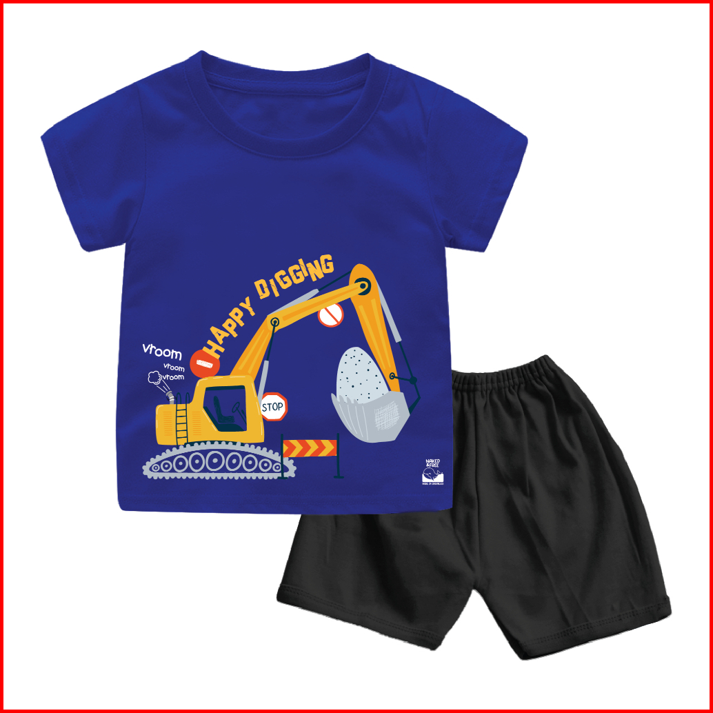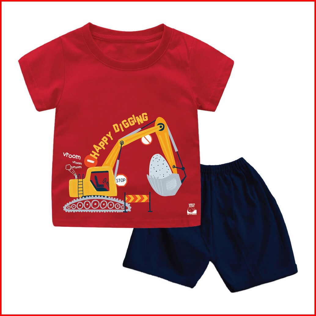 Naked Free Setelan Pendek Bayi Anak Laki-laki Excavator Series Happy Digging Bahan Katun 30s
