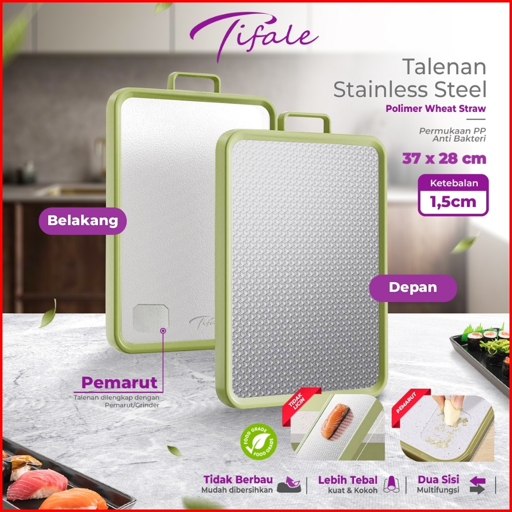 Bebehome X Hongzhuo Double Sided Cutting Board Talenan Stainless Dua Sisi Chopping Board Multifungsi