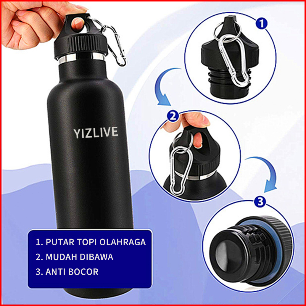 Yizlive Botol Minum 750 1000ml 304 Tumbler Stainless Insulasi Vakum Portable Botol Minum Tumbler Tahan Panas Dingin 24 J