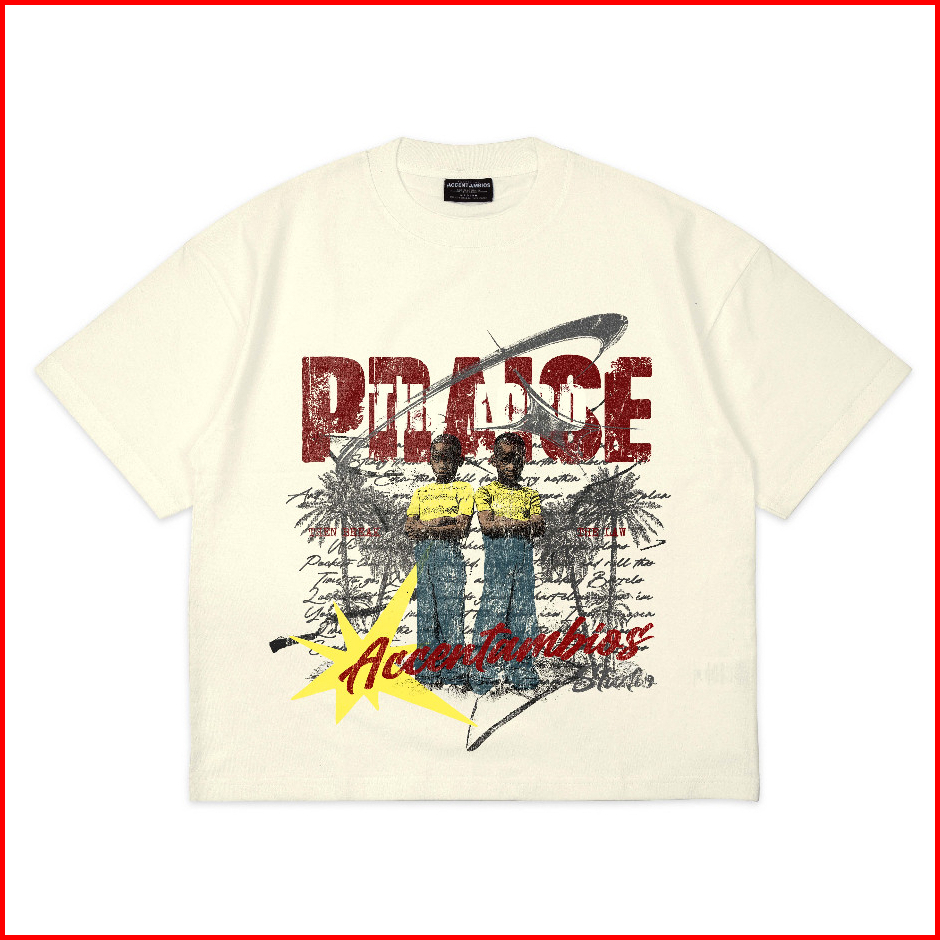 Accentambios Kaos Boxy Oversized Praise Cream - Cotton Combed 20s