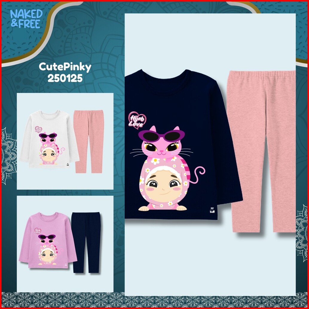Naked Free Setelan Panjang Anak Perempuan Hijab Love Series Cute Pinkycat Bahan Katun Combed Hij-1