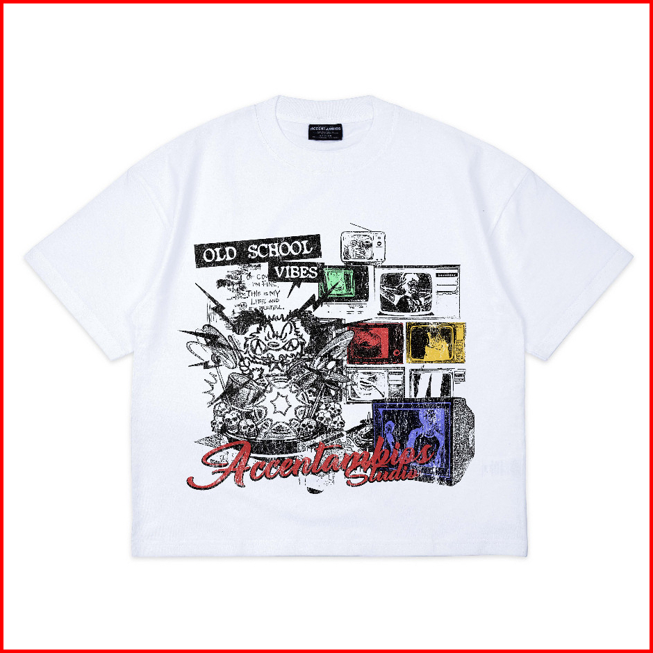 Accentambios Boxy Oversized T-shirt Old School White - Cotton Combed 20s