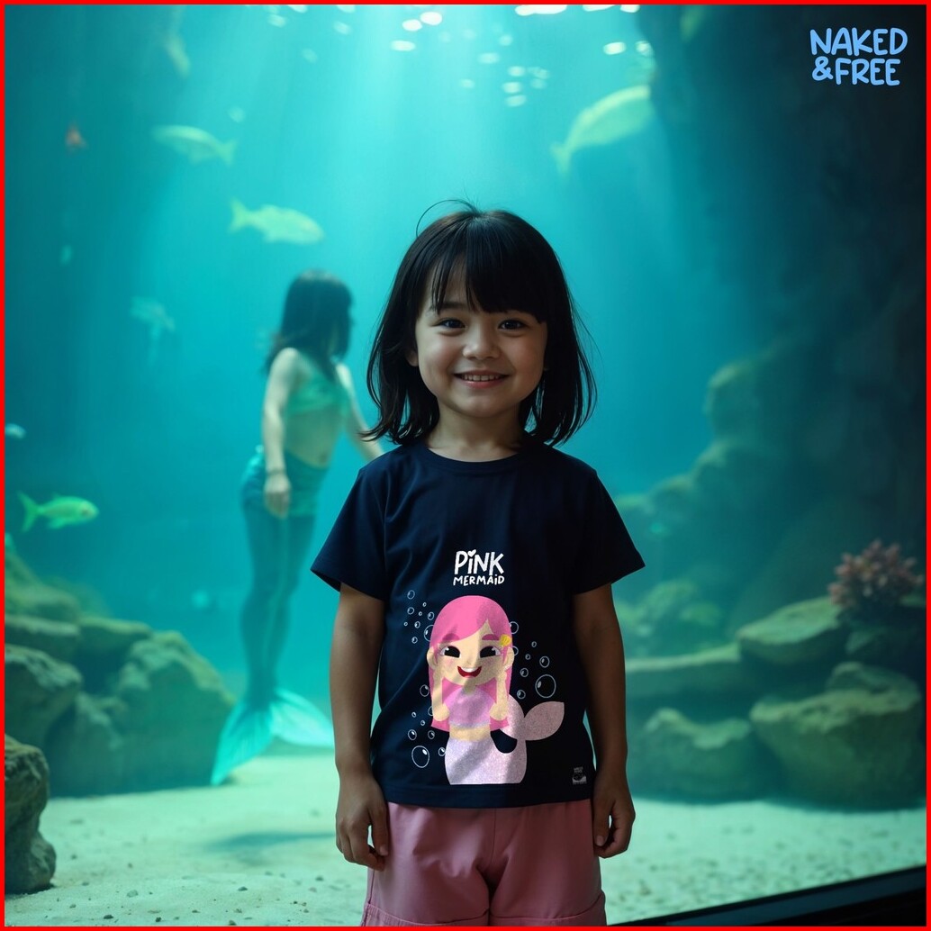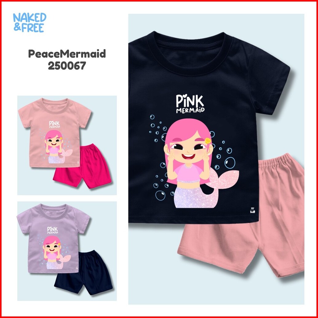Naked Free Setelan Pendek Bayi Anak Perempuan Pink Mermaid Series Chill Peace Bahan Katun Combed