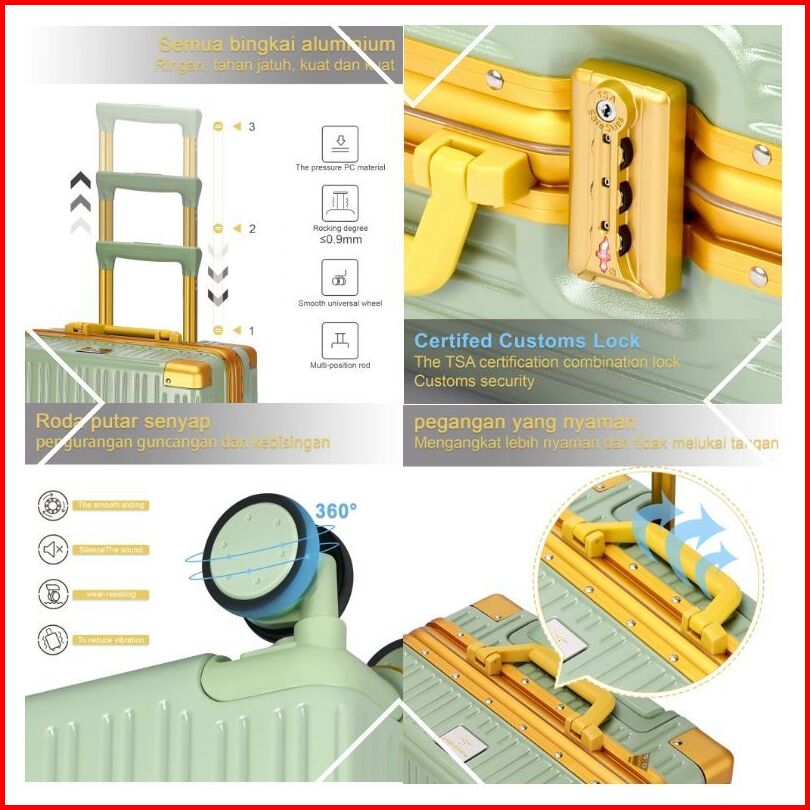 Jzr Travel Koper A978 Koper Kombinasi Koper Kabin Roda Universal Rangka Aluminium Ukuran 20 22 24inci A978