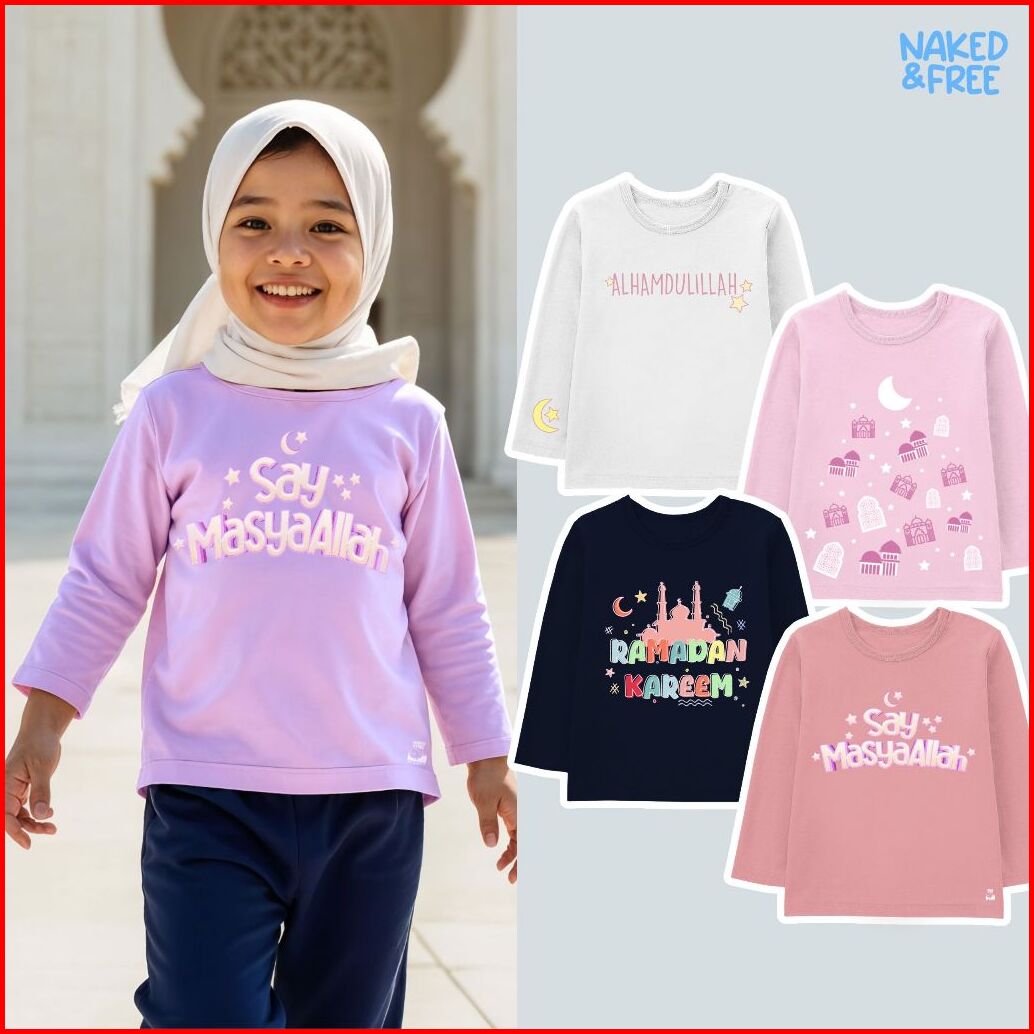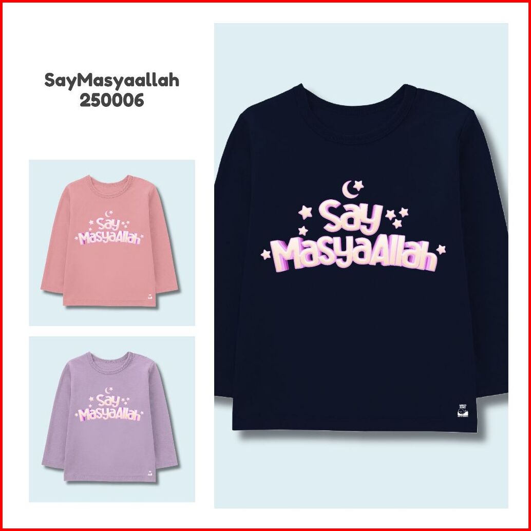 Naked Free Baju Kaos Lengan Panjang Muslim Anak Perempuan Series Say Masyaallah Bahan Katun Combed