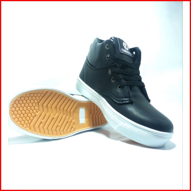 Comdestal Sepatu Hitam Polos Anak Laki - Laki Sepatu Sekolah Anak Kukit 30 - 41