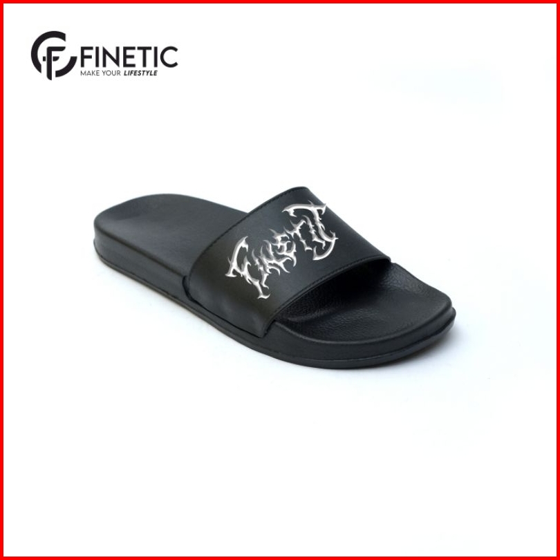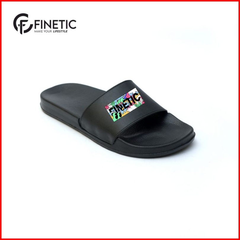 Finetic Sandal Slide Pria Original Black Style Anti Air Ukuran 39-43