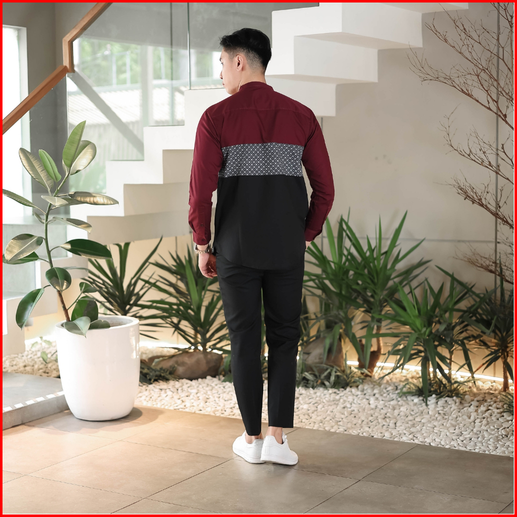 Ancstr Kemeja Pria Shanghai Aplikasi Motif Premium - Ruby