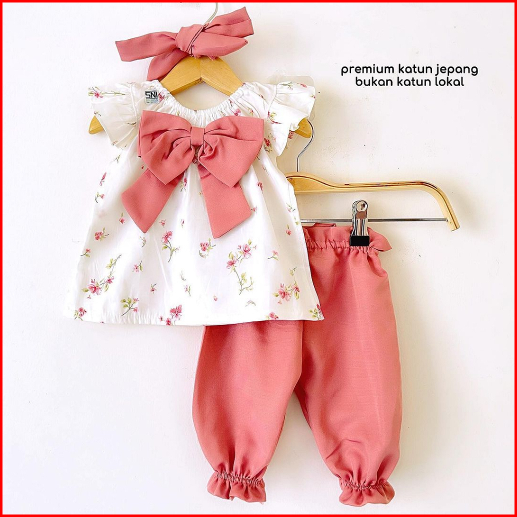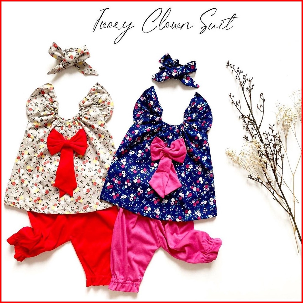 Baju Setelan Bunga Bandana Pergi Lucu Fashion Anak Bayi Perempuan Cewek Terlaris May Delia Bunny Lody Clown Suit