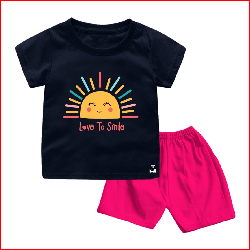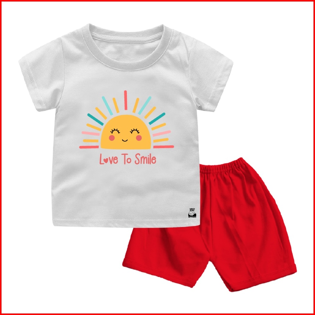 Naked Free Setelan Naf Typography Bayi Anak Series Love Smile 6 Bulan-8 Tahun Bahan Katun Combed