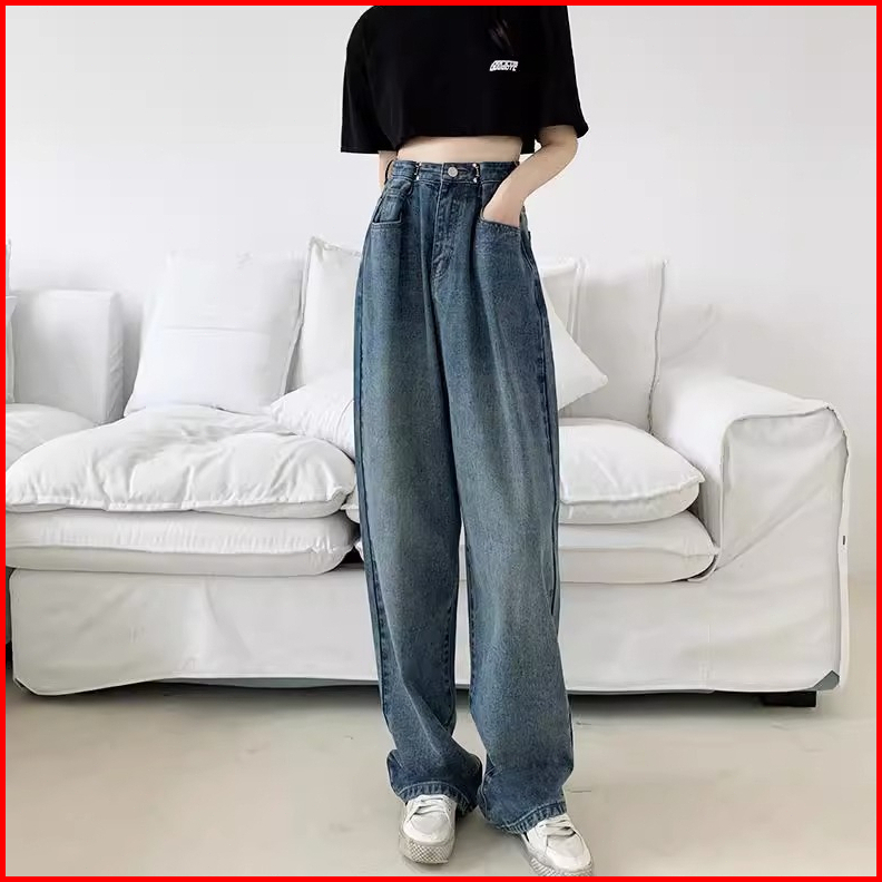 Highwaist Celana Jeans Wanita Terbaru Celana Panjang Jeans Korean Style Fashion Loose Pants
