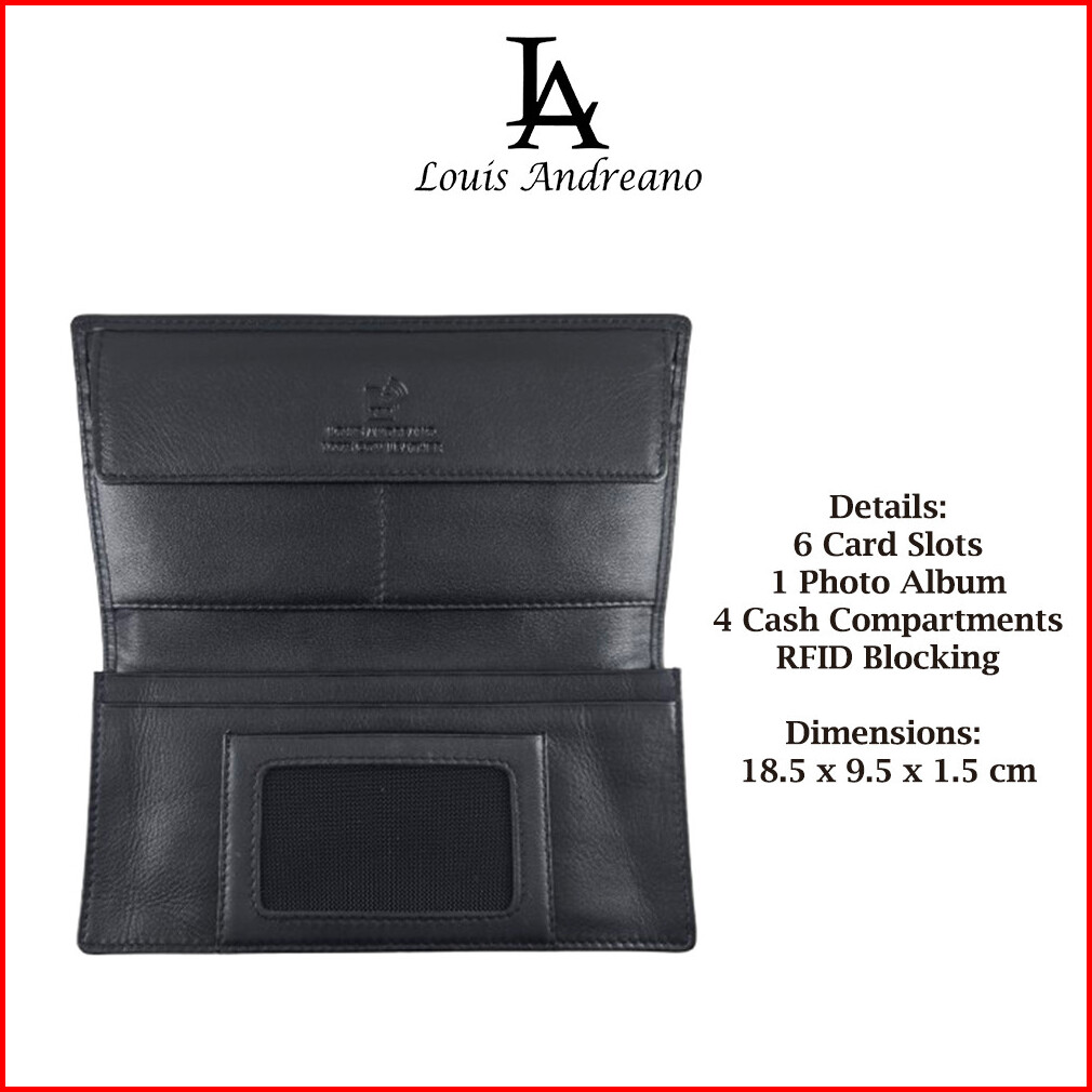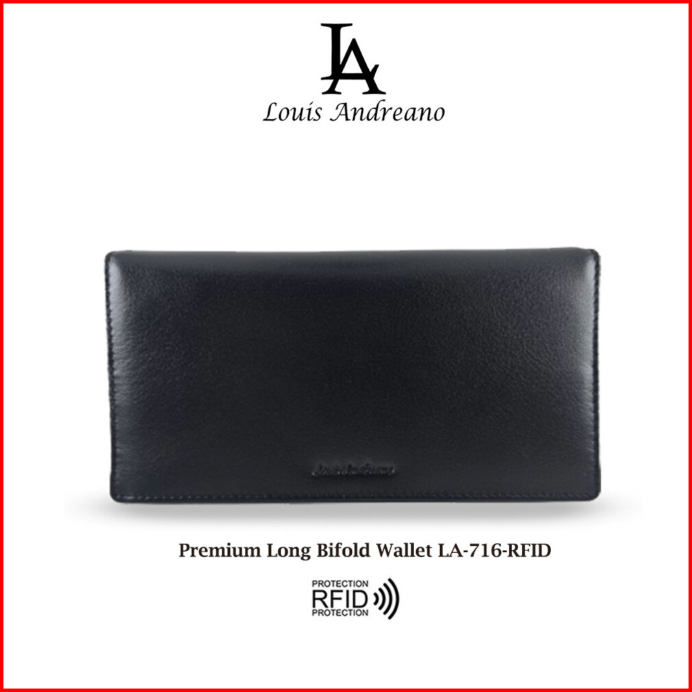 Louis Andreano La-716-rfid Dompet Panjang Pria Bifold Rfid Blocking Kulit Sapi Nappa Leather