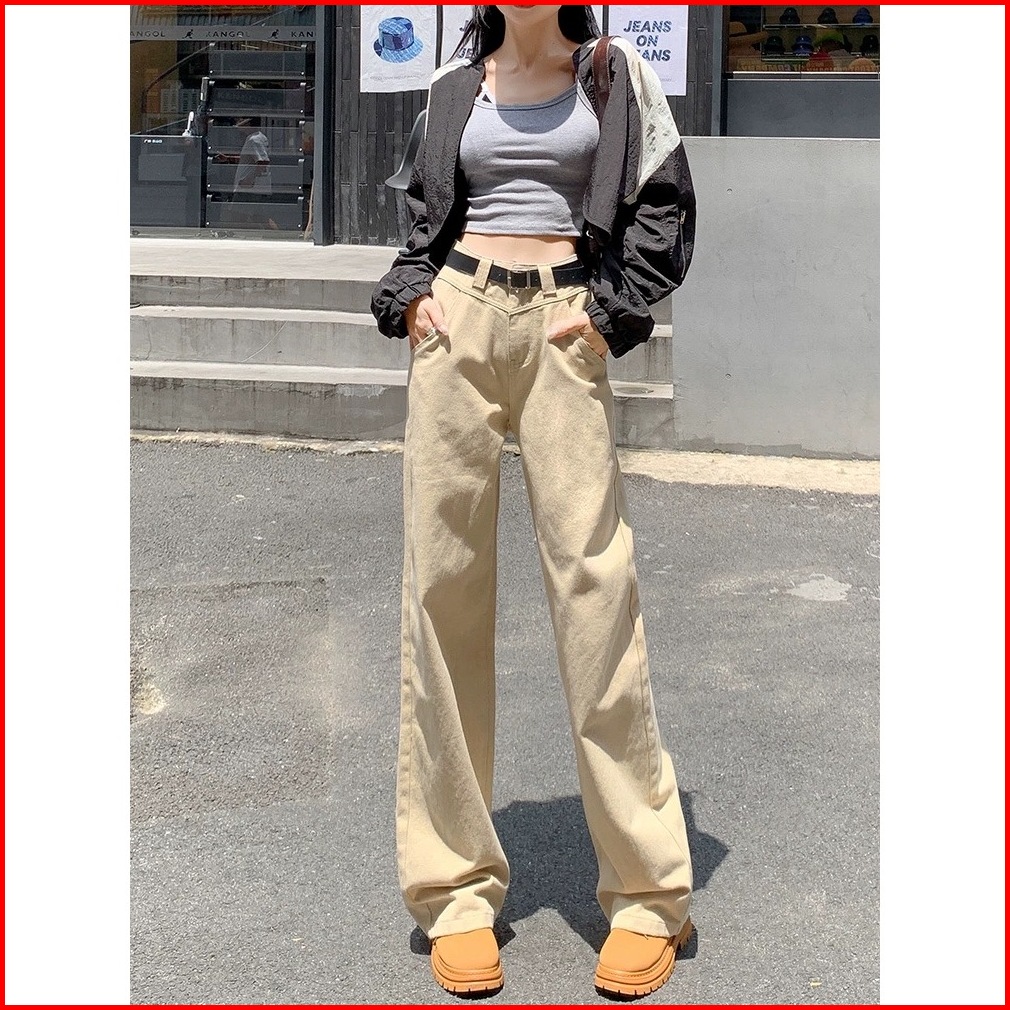 Khaki Highwaist Celana Jeans Wanita Loose Korea Kasual Pants