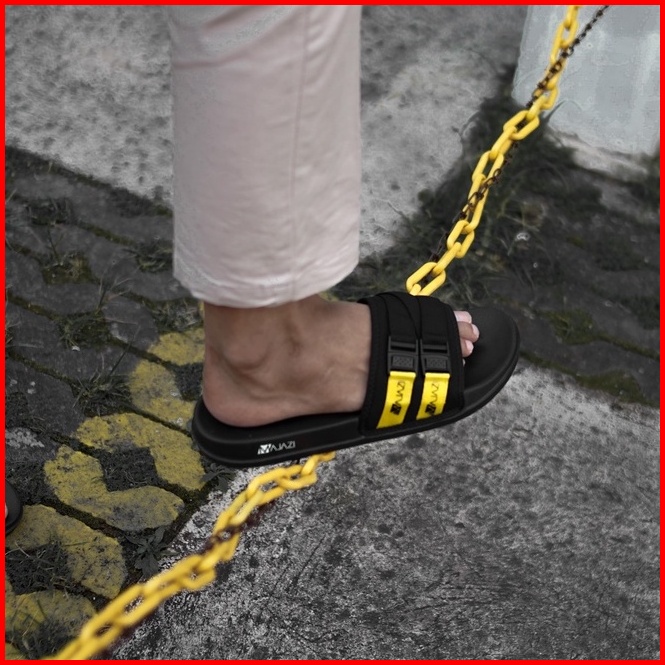 Majazi - Sandal Slide Pria Dortmund Black Yellow