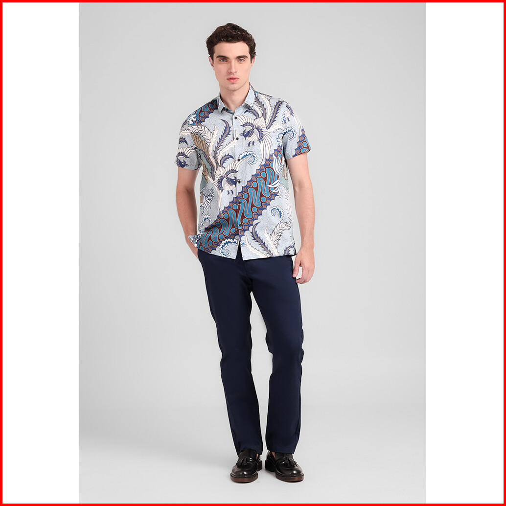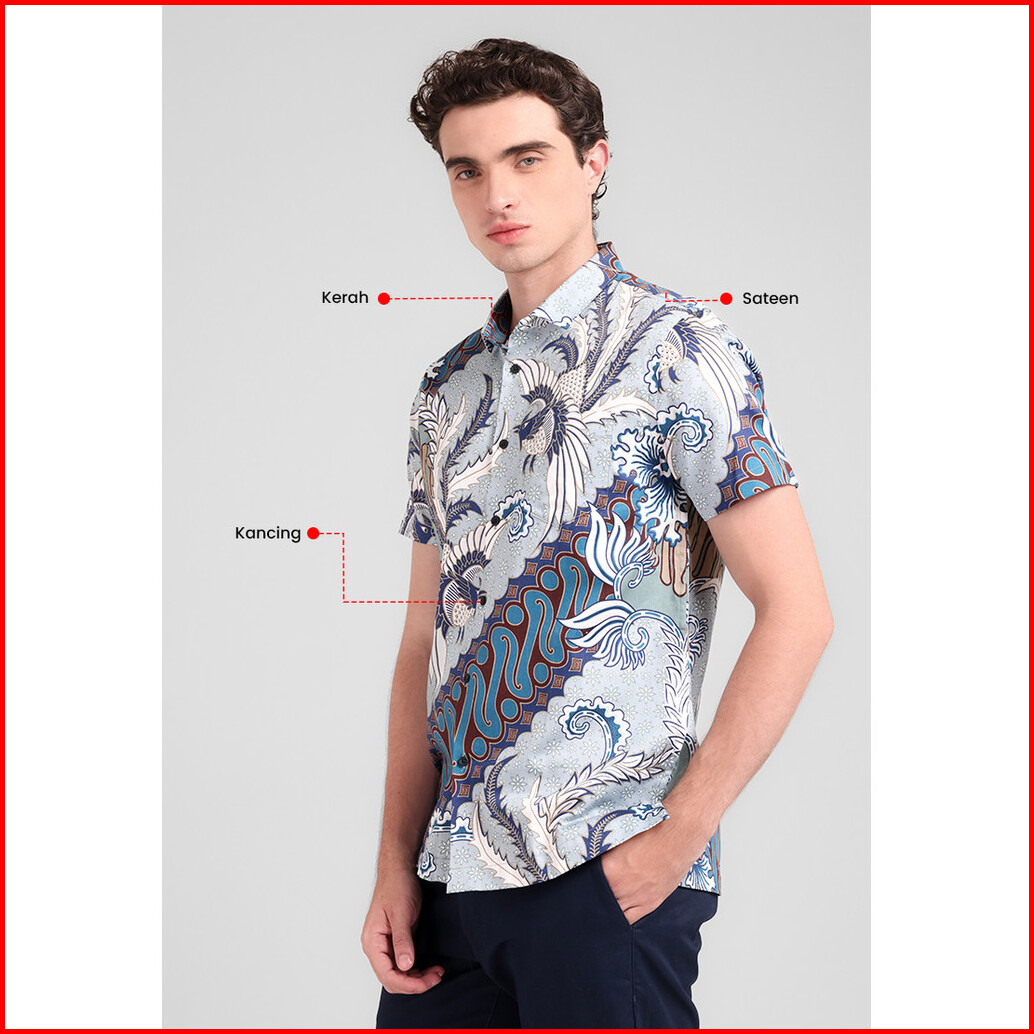 Manzone - Kemeja Batik Lengan Pendek Pria Pandarka 03 Modern Fit - Green Grey