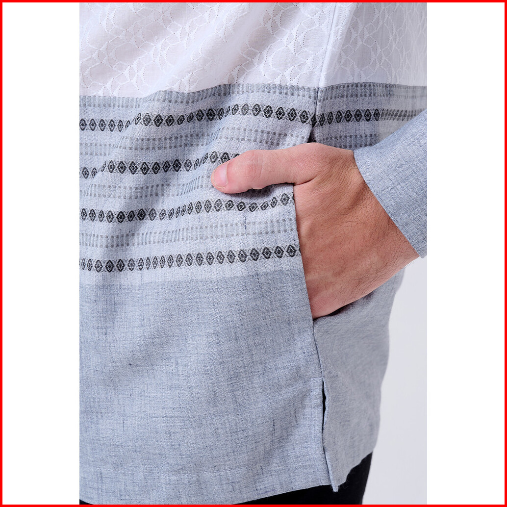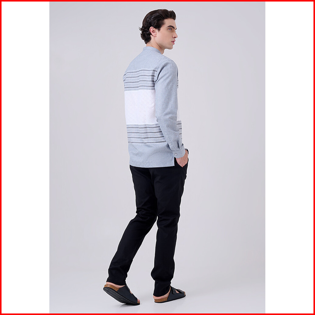Manzone - Kemeja Koko Lengan Panjang Pria Hurriya Modern Fit - Light Grey