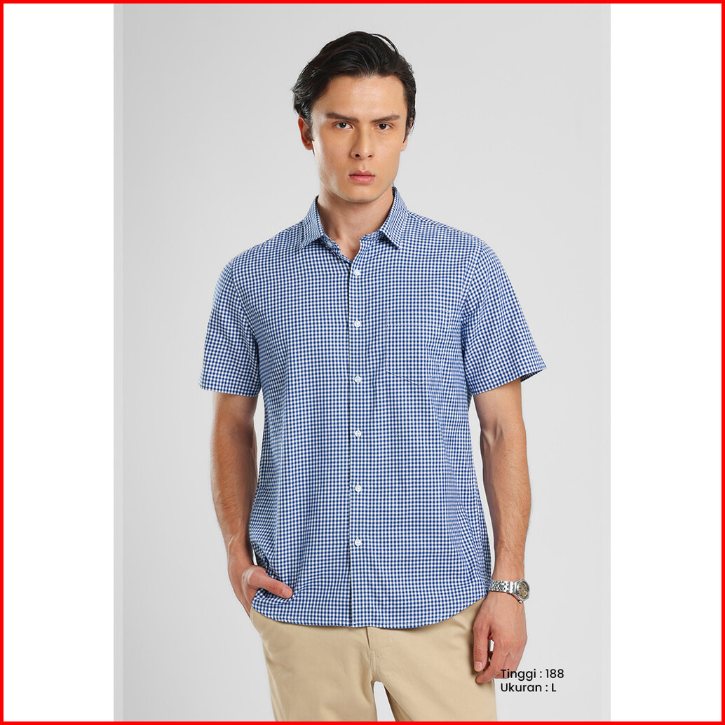 Manzone - Kemeja Lengan Pendek Pria Karl 06 Modern Fit - Blue