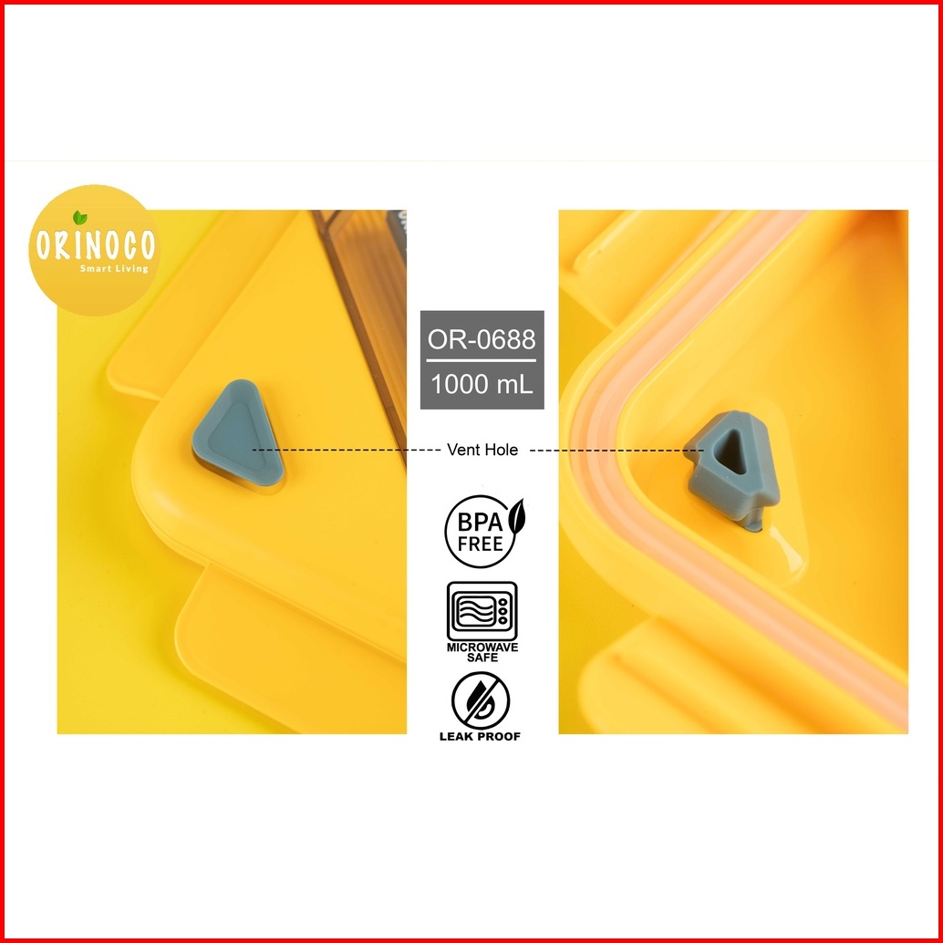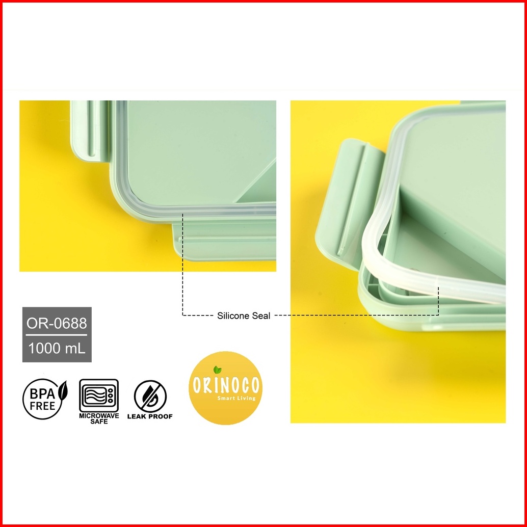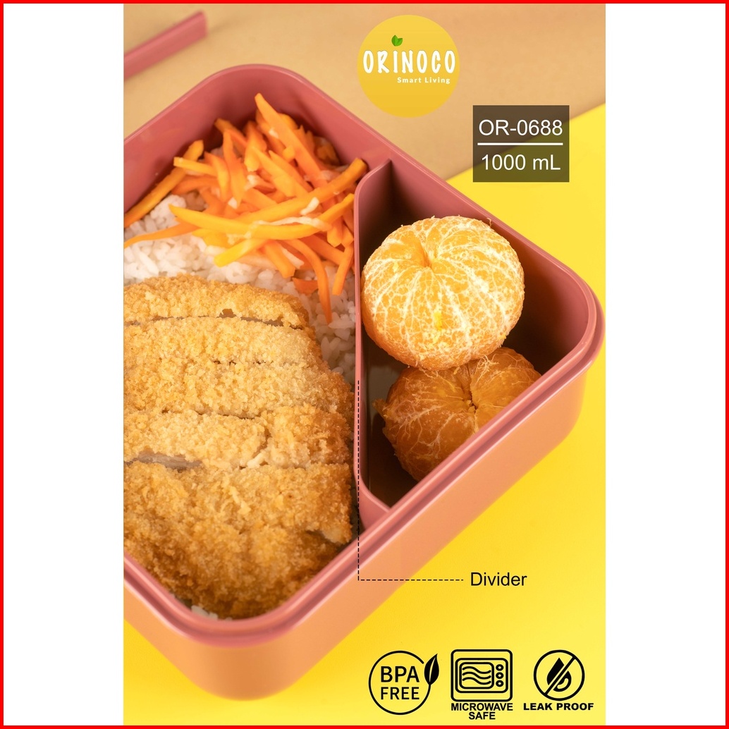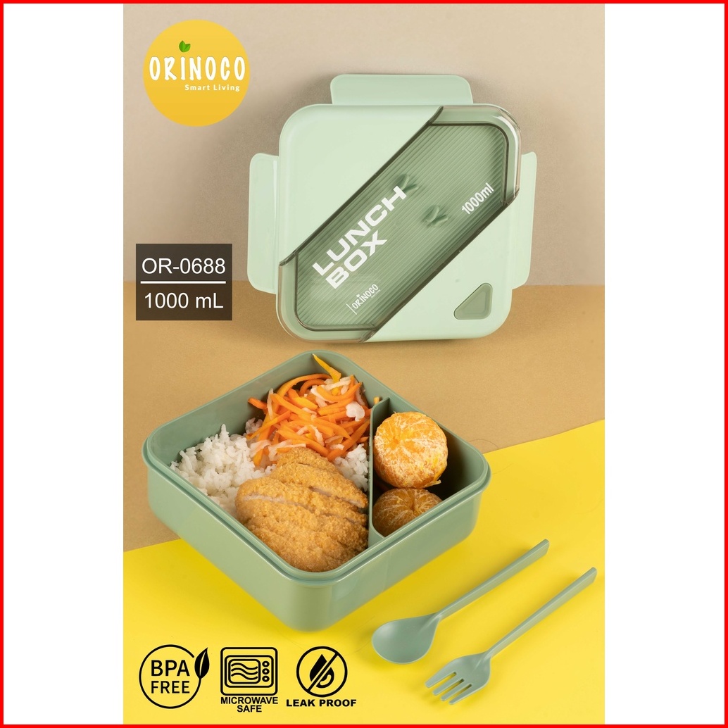 Orinoco Lunchbox 2 Sekat New Look Design Or-0688 Kotak Makan Ukuran 1000 Ml Include Sendok Garpu Anti Tumpah
