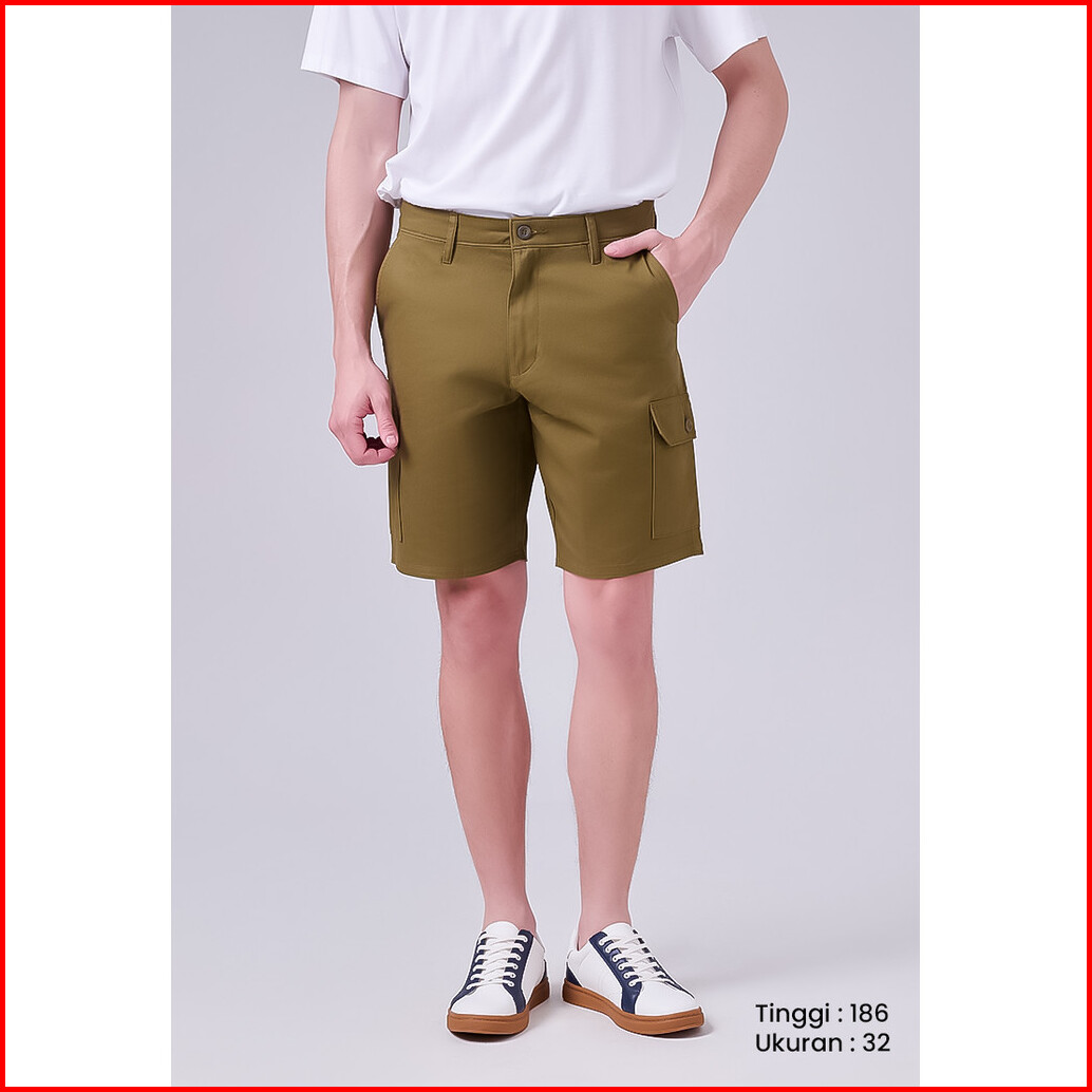 Manzone - Celana Pendek Bermuda Pria Alief 4 Cargo - Olive