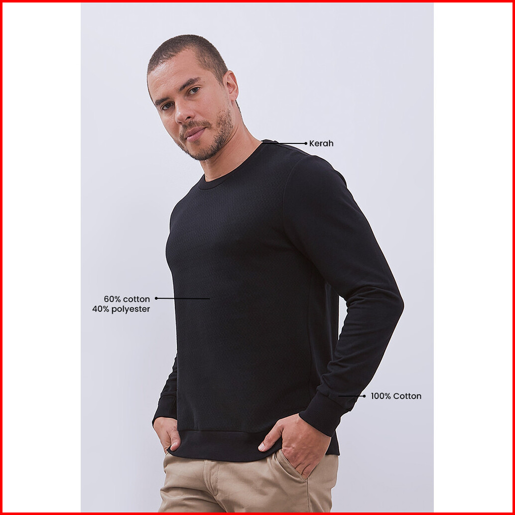 Manzone - Sweatshirt Dobby Lengan Panjang Pria Jefro 05 - Black